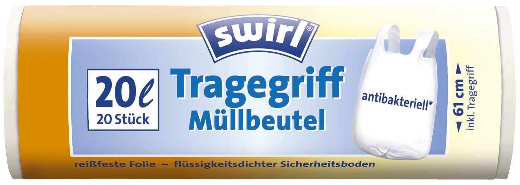 Swirl Organisationsmappe Müll-Beutel antibakteriell mit Tragegriffen - 20 Liter Folienstärke 10