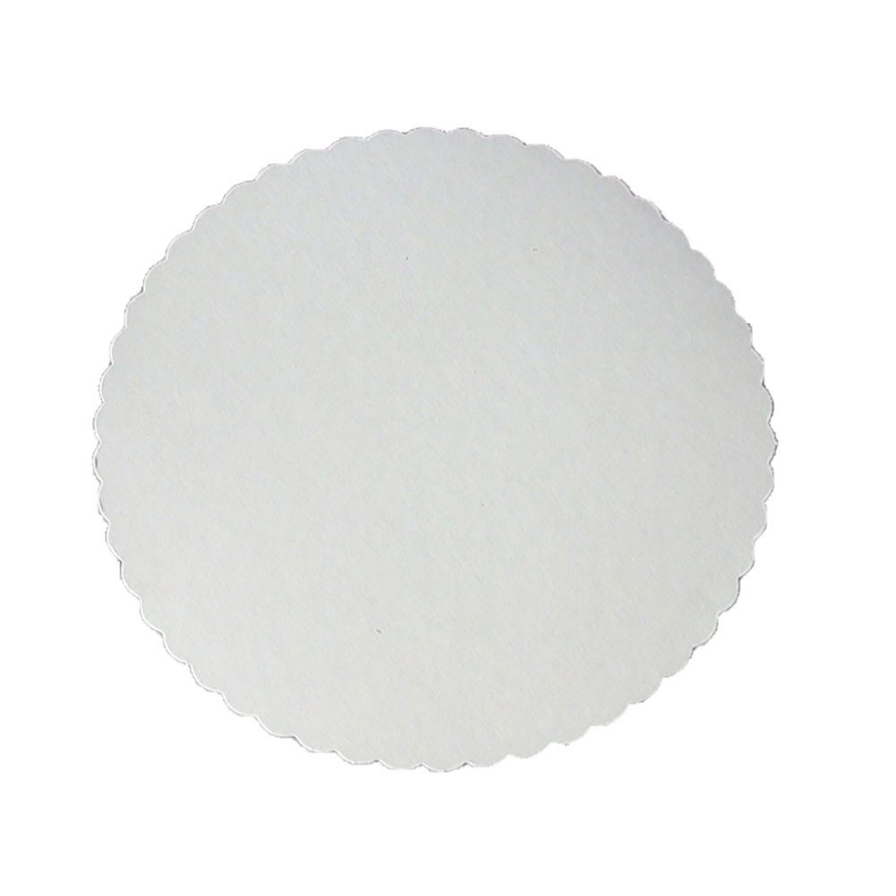 Diese runden Tortenunterlagen mit einem Durchmesser von 30 cm bestehen aus stabilem, mehrlagigem Triplexkarton und sind in klassischem Weiß gehalten. Der abgerundete Zackenrand verleiht den Unterlagen eine dekorative Optik und macht sie ideal für die stilvolle Präsentation von Torten, Kuchen und anderen Backwaren.