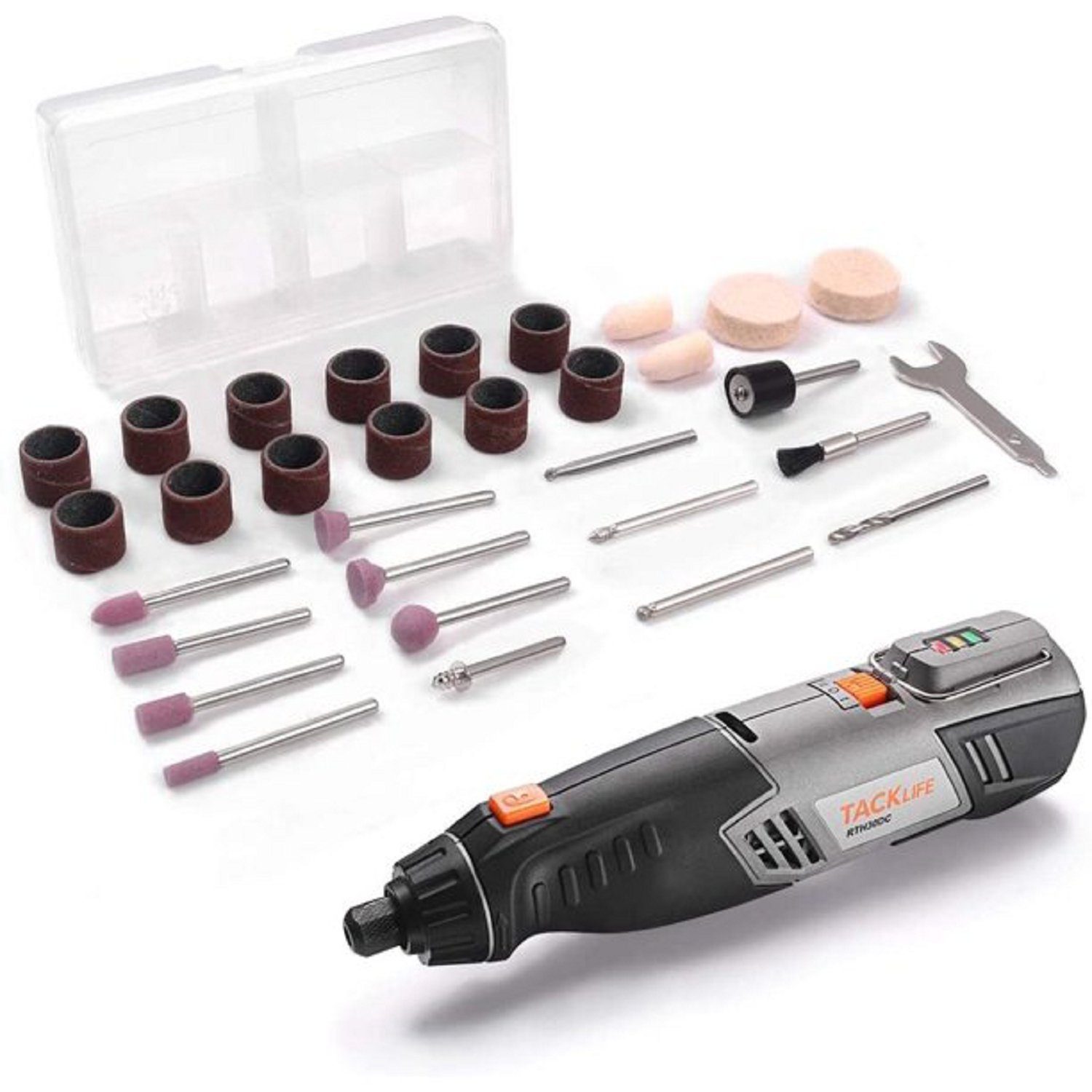Verschiedenes Zubehör : 31 Zubehörteile helfen bei verschiedenen Arbeiten wie Schleifen, Schleifen, Reinigen, Gravieren usw. Darüber hinaus ist das kabellose Rotationswerkzeug mit den meisten Zubehörteilen anderer Rotationswerkzeugmarken kompatibel.