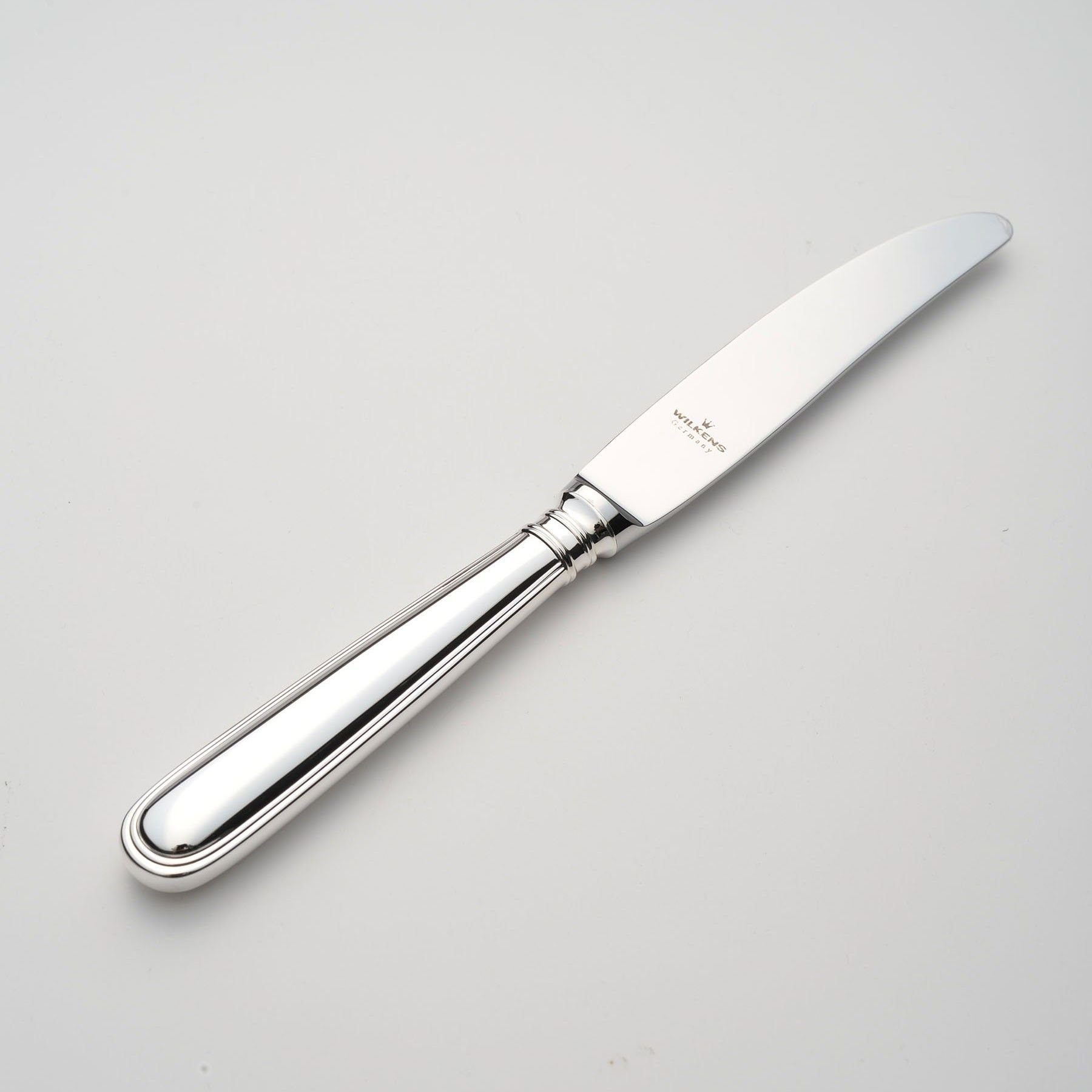 Wilkens Menügabel Schwedisch Faden in 180g Royal Versilberung Edle Menügabel von WILKENS in Royal Versilberung - Muster Schwedisch Faden. Ergänzen Sie weitere Besteckteile für eine stilvoll gedeckte Tafel! Auf Wunsch mit WILKENS Meister Gravur (aufpreispflichtig). Die betont schlanke Tropfenform und ein graziles Fadenrelief machen WILKENS Schwedisch Faden zu einem Besteck von besonderer Eleganz: Nordisch kühl, aber nicht streng, sparsam in der Form und dennoch von hohem Gefühlswert. Ein Entwurf der über alle modische Trends erhaben und schon heute der zeitlose Klassiker ist. Die tägliche Nutzung Ihres WILKENS Silberbesteck verhindert ein Anlaufen (oxidieren) der Besteckteile. WILKENS Silberbestecke dürfen gerne im Geschirrspüler gereinigt werden. Für die besondere Silberpflege empfehlen wir die Pflegeprodukte aus dem Pflegemittelsortiment von Hagerty. So bewahren Sie den Glanz und die Freude an Ihrem WILKENS Tafelsilber.