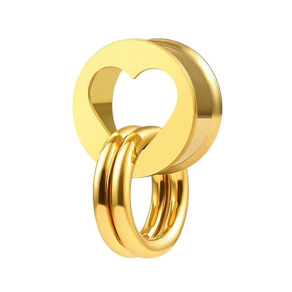 Das Flesh Tunnel Herz Ohr ist ein Edelstahl-Ohrpiercing, das speziell für das gedehnte Ohrloch entwickelt wurde. Es handelt sich um einen Double Flared Tunnel, was bedeutet, dass die Flare (der Rand) an beiden Seiten des Tunnels ausgeprägt ist, um das Einsetzen zu erleichtern und für einen sicheren Halt zu sorgen. Das besondere an diesem Piercing sind die zwei eingehängten Ringe, die dem Design einen einzigartigen und auffälligen Look verleihen. Das Material Edelstahl ist langlebig, hypoallergen und gut verträglich für die Haut.