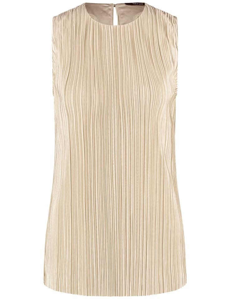 Taifun Plisseetop für Damen – schimmerndes, ärmelloses Top mit unregelmäßigen Plisseefalten, Nackenverschluss und lockerem Schnitt. Elegant, feminin, vielseitig.