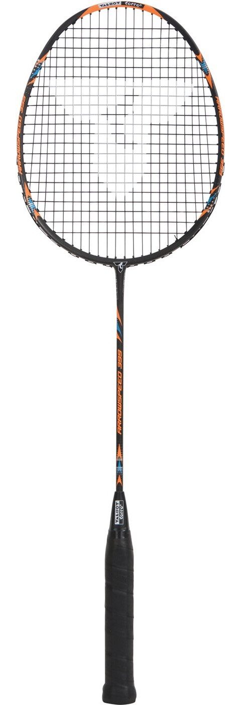 Der neue Talbot Torro Arrowspeed 399 ist das Einstiegsracket in den Vollgraphit-Bereich: ein tolles Racket für verhältnismässig kleines Geld. Er ist zu 100% aus hochwertigem Graphit gefertigt. Dadurch ist er deutlich leichter als Metall oder Composite Schläger und der Schaft ist spürbar flexibler für mehr Ballbeschleunigung und Power. Der Arrowspeed 399 ist komplett aus einem Stück gefertigt (One Piece Konstruktion), die Verbindung zwischen Kopf und Schaft stellt keine Schwachstelle mehr dar. Der handliche ausgewogene leichte Schläger wiegt nur 84 g unbespannt bzw. 89 g bespannt. Die mittlere Schaftflexibilität ist ein guter Kompromiss aus Kontrolle und Power. Der Kopf ist leicht kantig; dieses Triangle Kopfprofil macht das Racket torsionssteifer und aussermittig getroffene Bälle lassen es nicht zu sehr verwinden (=> mehr Kontrolle beim Schlag). Bespannt ist der Arrowspeed 399 mit der multifilen Talbot-Torro Galaxy Saite in 0,8 mm - haltbar und elastisch. Die maximal empfohlene Bespannungshärte ist 9 kg. Talbot-Torro ist eine deutsch-britische Marke, gegründet u.a. von Derek Talbot, einem sehr guten britischen Badminton Spieler, der massgeblich dazu beigetragen hat, dass Badminton olympisch wurde. Talbot-Torro ist heute marktführend in Zentraleuropa im Bereich Freizeit-Badminton und zeichnet sich durch tolle Technologien und Ausstattung bei gleichzeitig fairem Preis-Leistungs-Verhältnis aus.
