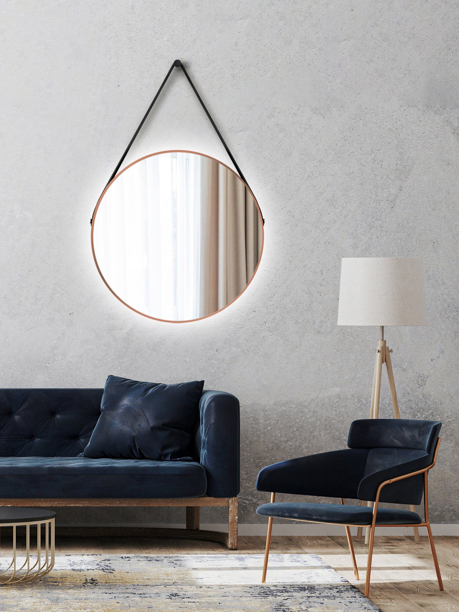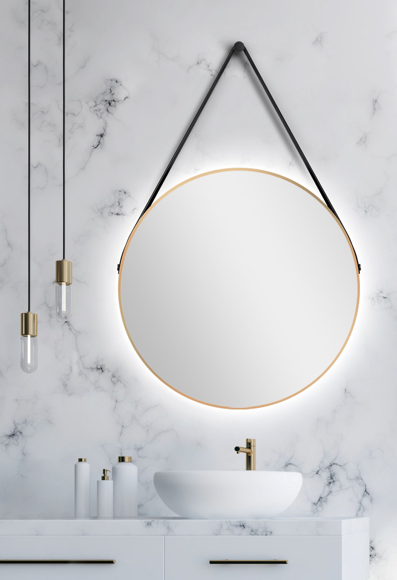 Modellbezeichnung | TALOS Dekorativer runder Wandspiegel mit indirekter LED Beleuchtung in weiß matt Ø 80 cm |