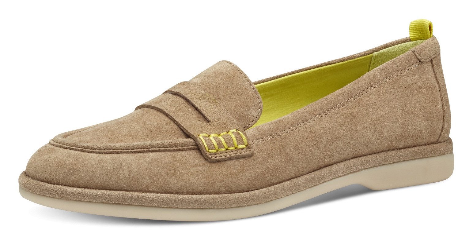 Die Kontrastnähte machen denn Schuh locker, lässig. Das Fußbett ist super bequem. Kaufempfehlung!