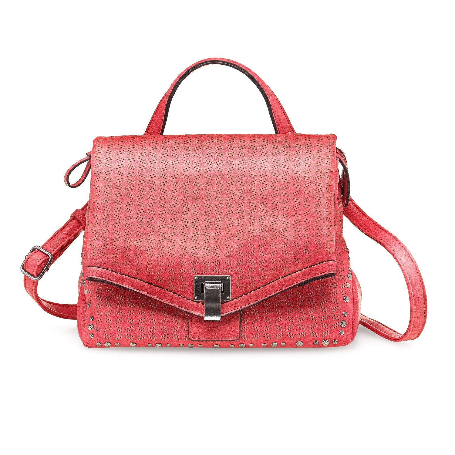 Die modische Satchel Bag der Marke Tamaris beweist Stilbewusstsein! Eine besondere Oberflächenstruktur im Rautendesign, die angesagte Farbgebung sowie der auffällige Nietenbesatz im vorderen Bereich sorgen für den modischen Look. Der breite Schulterriemen gewährt Tragekomfort und lässt sich kinderleicht verstellen. Als Blickfang dient die praktische Schnalle, die der Umhägetasche gleichzeitig einen leicht derben Touch verleiht. Sie wertet nicht nur schlichte Alltags-Outfits auf, sondern verleiht auch eleganten Looks im Handumdrehen das gewisse Etwas.