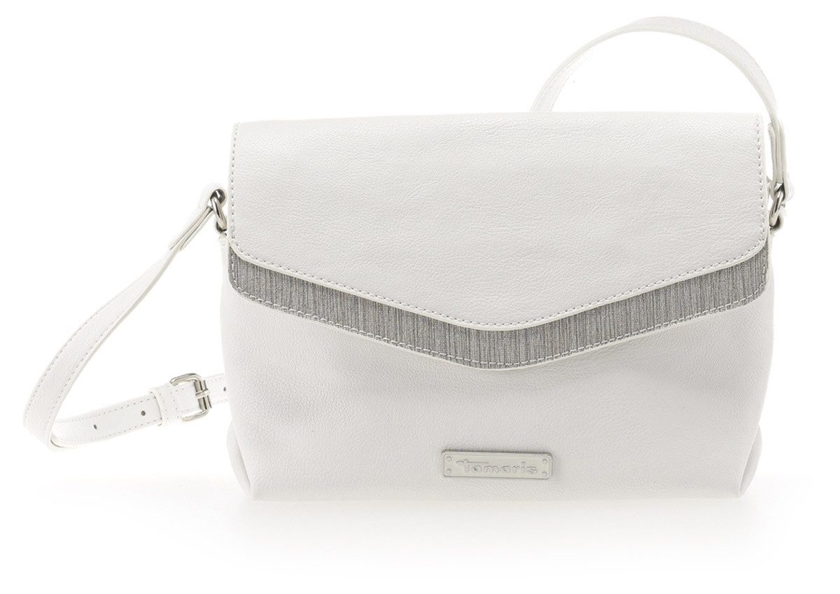 Aussendetails: langer Schulterriemen zum Quertragen, Flappe mit Magnetverschluss und Reissverschluss, Steckfach unter der Flappe vorne, Tamaris Metall-Logoschriftzug. Innendetails: 1 Reissverschlusstasche, 1 Stecktasche mit Logo-Ripsband-Abschluss.