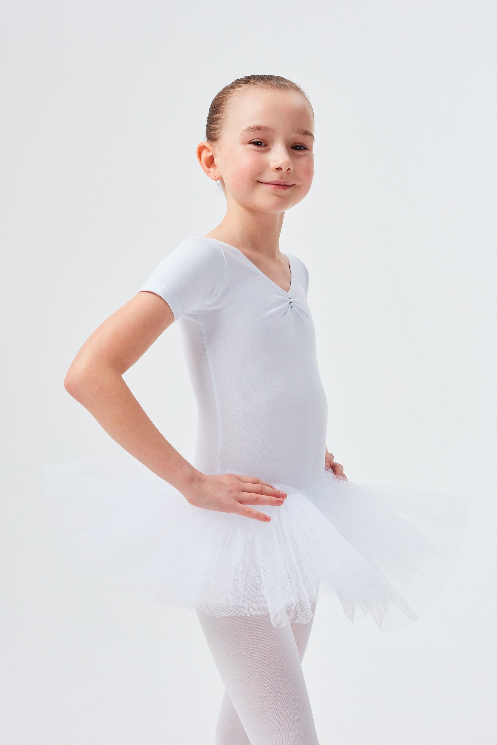 Besondere Merkmale | Kurzarm Ballettkleid aus weicher Baumwolle mit Tüllrock für Mädchen |