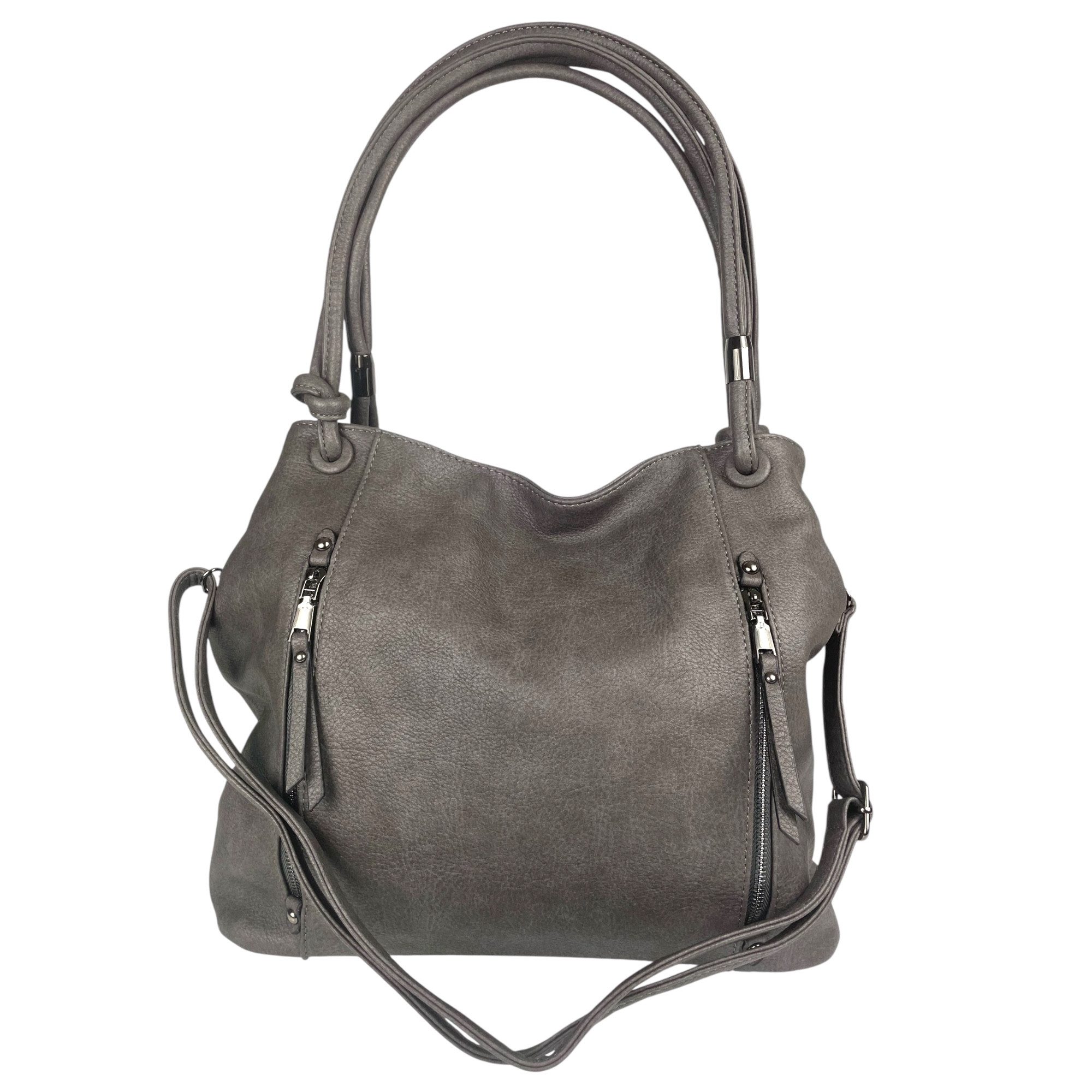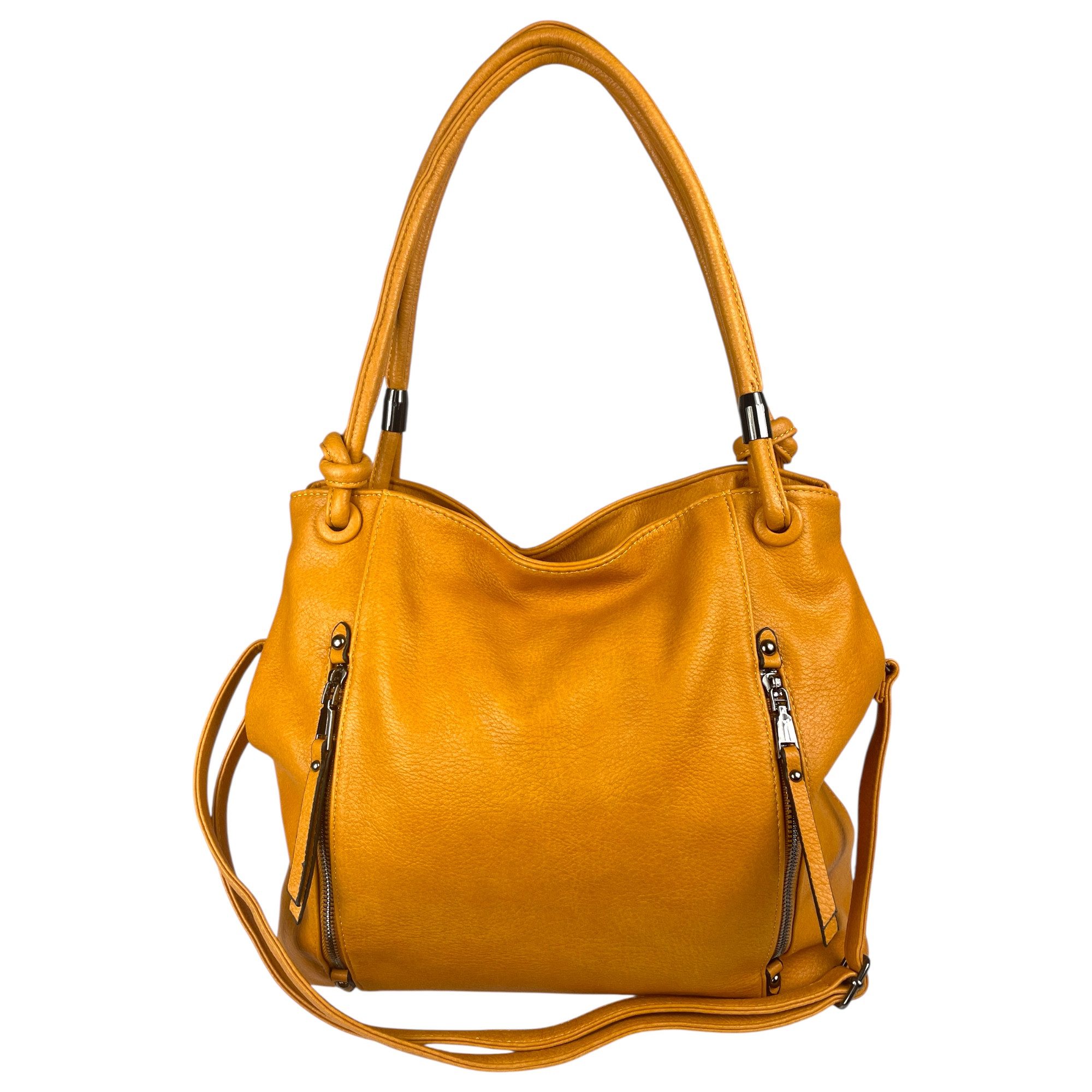 Die Schultertasche, auch bekannt als Umhängetasche, ist ein unverzichtbares Accessoire für jeden Anlass. Diese große Handtasche aus weichem Lederimitat verbindet modernes Design mit Funktionalität. Mit einem Reißverschluss und langen Tragegriffen kann sie bequem über der Schulter getragen werden. Darüber hinaus verfügt sie über einen zusätzlich abnehmbaren und verstellbaren Schultertrageriemen, der es ermöglicht, sie sportlich und leger zu tragen. Die Tasche ist einfarbig gehalten und besitzt kleine Fächer im Inneren und äußeren Bereich, um all deine Essentials sicher aufzubewahren. Beide Seiten lassen sich oben mittels Druckknopf verkleinern (siehe Bilder). Das sieht optisch sehr schön aus und Langfinger können nicht so leicht den Reißverschluss öffnen. Ob für den Alltag oder besondere Anlässe, diese Schultertasche ist ein vielseitiger Begleiter, der deinem Outfit eine stylische Note verleiht. Details: Maße: breit 37cm x hoch 30cm x tief 15cm | Henkel: 60cm lang | Schultertrageriemen: 130cm lang | Material: weiches Kunstleder (optisch kaum von echtem Leder zu unterscheiden) | Pflege: mit feuchtem Tuch abwischbar | Innenfutter: Stoffmix | Fächer innen: 2x großes Hauptfach, 2x Reißverschlussfach, 2x Einsteckfach | Fächer außen: Frontseite 2x Reißverschlussfach, Rückseite 1x Reißverschlussfach