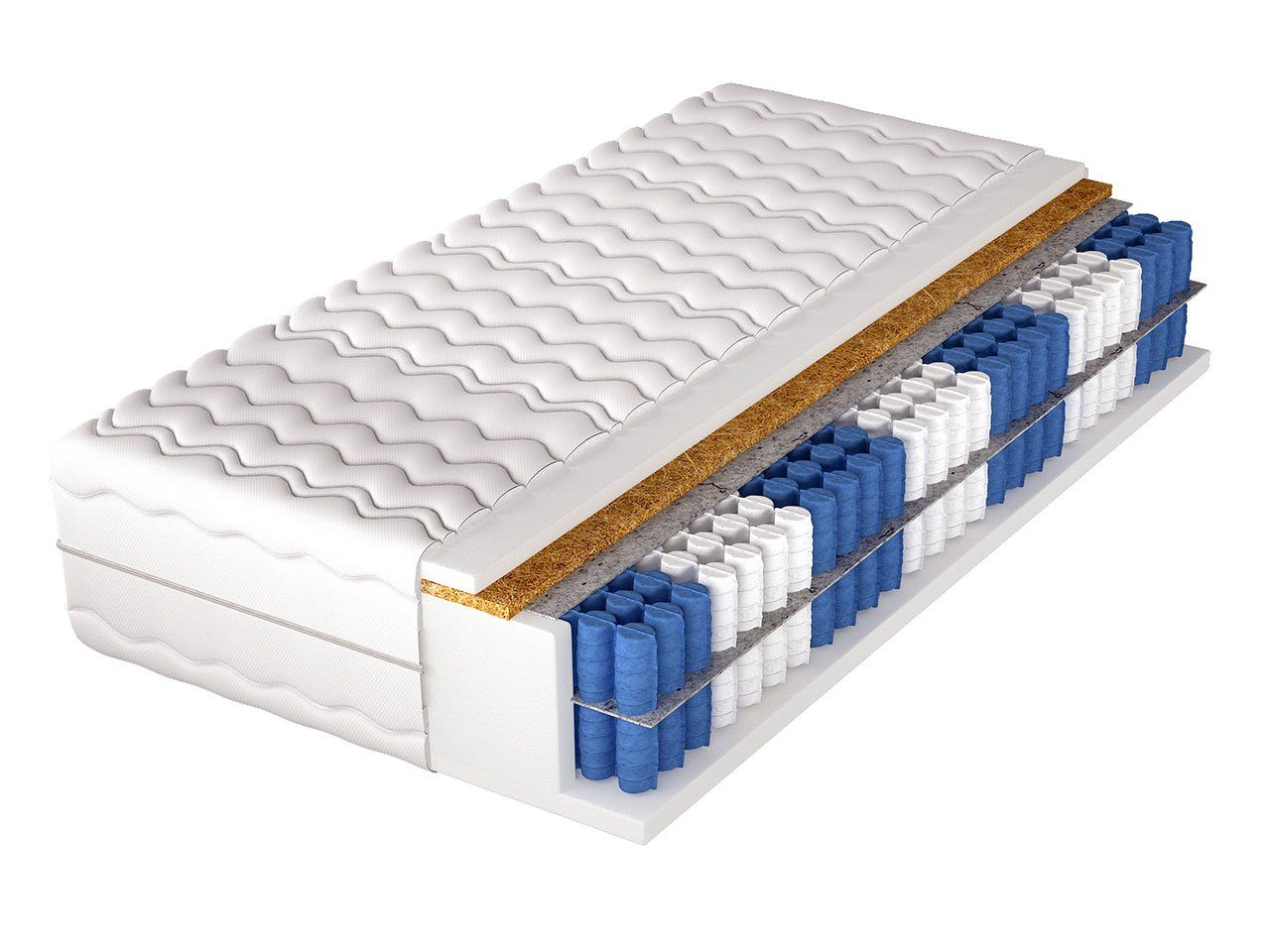 Materialzusammensetzung | Isolierung (Watte) - klimatisierte Fasern, welche für eine entsprechende Ventilation der Matratze sorgen. Kokosmatratze.Schaumstoff T25 - qualitativ hochwertiger Schaumstoff sorgt für zusätzliches Ausfüllen der Matratze. Matratzenbezug: 100% Polyester |