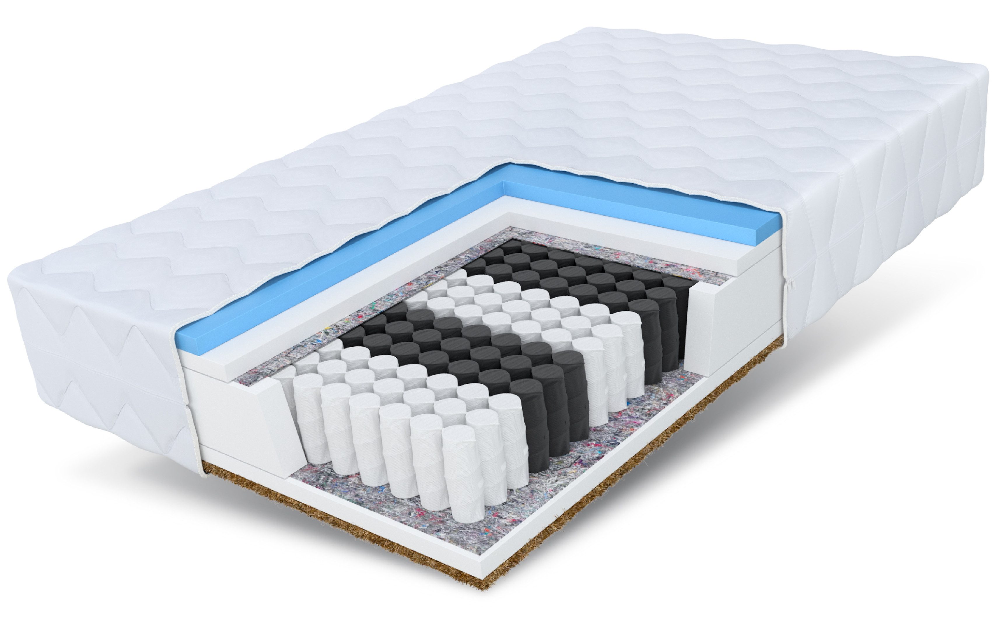 Kernaufbau | 7 Zonen Taschenfederkern Kokosfasereinlage PREMIUM MATRATZENBEZUG Härtegrad H3/H4 DOPPELSEITIG |