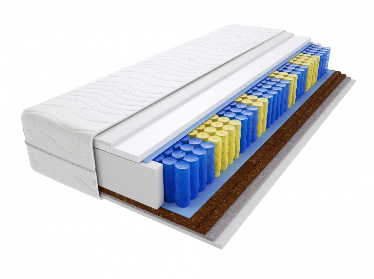 Kokos - 100% natürlicher Rohstoff aus Kokosnuss, hat antiallergische und antimykotische Eigenschaften, verbessert die Belüftung im Inneren der Matratze, wodurch übermäßiges Schwitzen verhindert wird. Es erhöht ihre Härte und Festigkeit und macht die Matratze widerstandsfähiger gegen Verformungen. Hochflexibler HR-Schaum - mit einer Dichte von 35 kg/m3 - dieser Schaum besteht aus einer Vielzahl von Luftblasen, sorgt für eine perfekte Körperanpassung, sehr guten Schlafkomfort und garantiert eine perfekte Belüftung der Matratze. Taschenfedern, 9 Zonen (262Stk/1m2) - spielen eine große Rolle bei der Konstruktion der Matratze. Jede Feder befindet sich in einer separaten Materialtasche und ist nicht mit einer anderen Feder verbunden, funktioniert separat, arbeitet leise! Dank dieser Konstruktion, Wenden und Drehen oder der Gewichtsunterschied der anderen Person ist völlig unmerklich. Durch den Einsatz unterschiedlicher Federhärten je nach unterstütztem Körperelement passt sich die Matratze perfekt dem Körper an. Die Matratze ist in 9 Härtezonen unterteilt. An der Stelle mit der größten Unterstützung, d.h. um die Hüfte, werden weichere Federn verwendet. Im Lendenbereich und an Stellen, an denen der Druck des Körpers auf die Matratze geringer ist, werden härtere Federn eingebaut. Gesteppter Bezug - hypoallergenes, antiallergisches Material, mit einem L-förmigen Reißverschluss. Wichtig: Der Bezug kann je nach Размер eine andere Anordnung von Inschriften und Zeichen aufweisen. Das Bezugsmuster kann geringfügig von dem auf dem Foto gezeigten abweichen. Die in der Visualisierung verwendeten Farben Farben sind illustrativ und können von den tatsächlichen Farben abweichen, die Eigenschaften der einzelnen Ebenen bleiben jedoch erhalten.