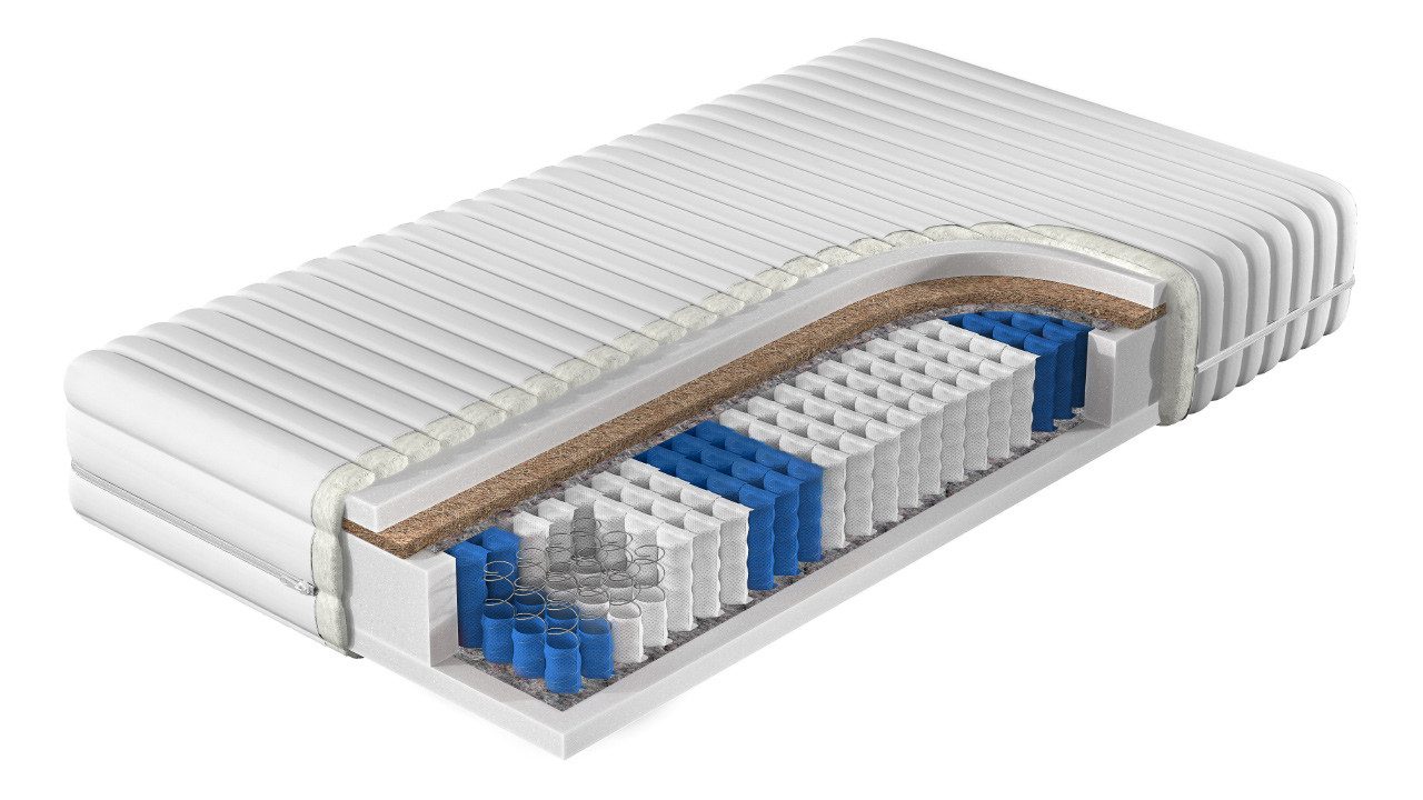 Materialzusammensetzung | Bezug: PES 100%, Taschenfederkern, Schaumstoff mit verbesserter Elastizität, Kokosmatte |