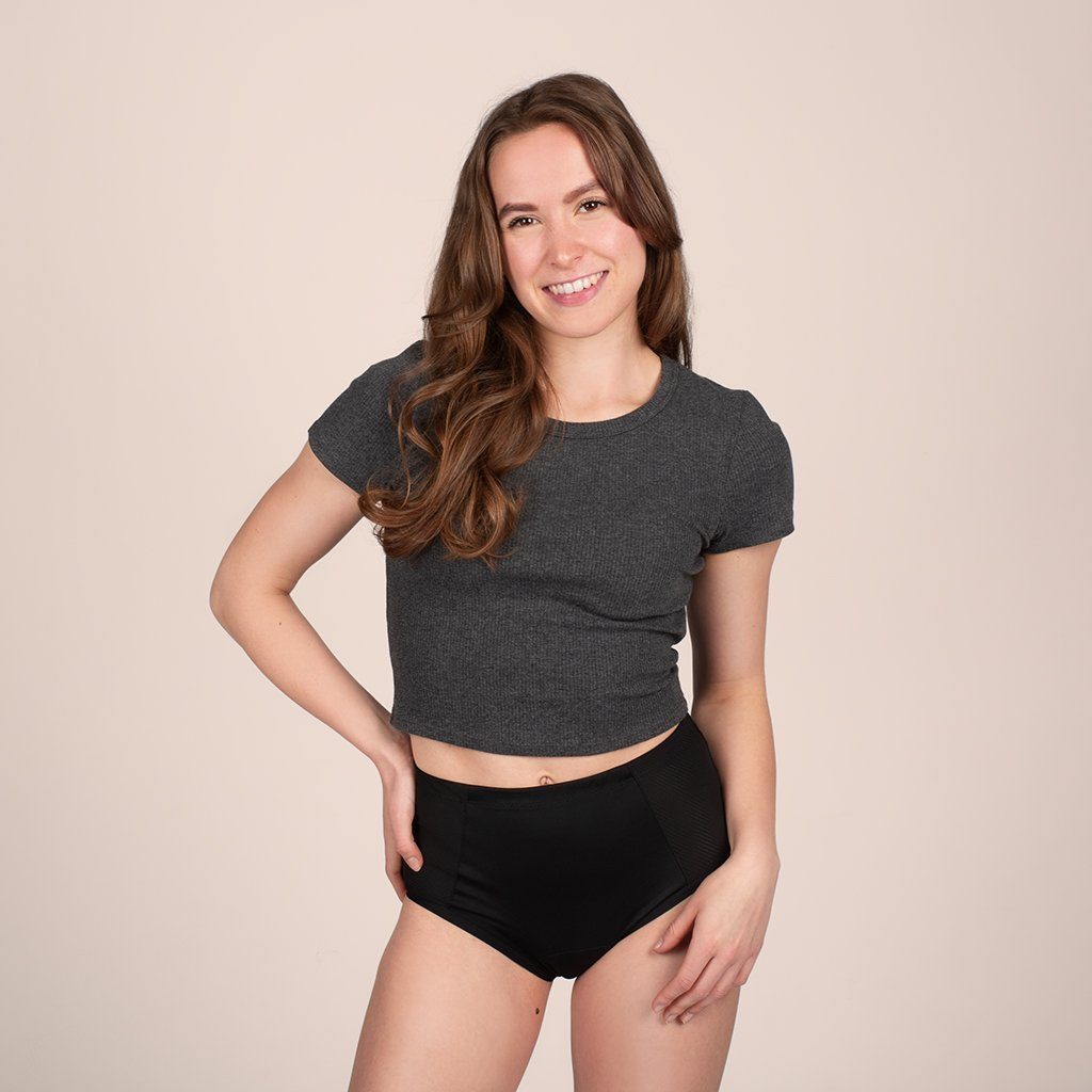 Materialeigenschaften | Material: Innen: 95 % Bio-Baumwolle und 5 % Elasthan Saugkern: 80 % Polyester und 20 % Polyamid Schutzschicht: 100 % TPU Außen: 82 % Polyamid und 18 % Elasthan |