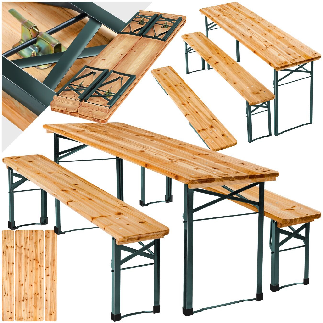 Die Bierzeltgarnitur Sissi von tectake bietet mit einem großzügigen Tisch und zwei breiten Sitzbänken ausreichend Platz für bis zu acht Personen. Egal ob Gartenparty, Familienfeier oder geselliges Beisammensein – dieses dreiteilige Set ist ein absolutes Must-have für jeden Außenbereich.