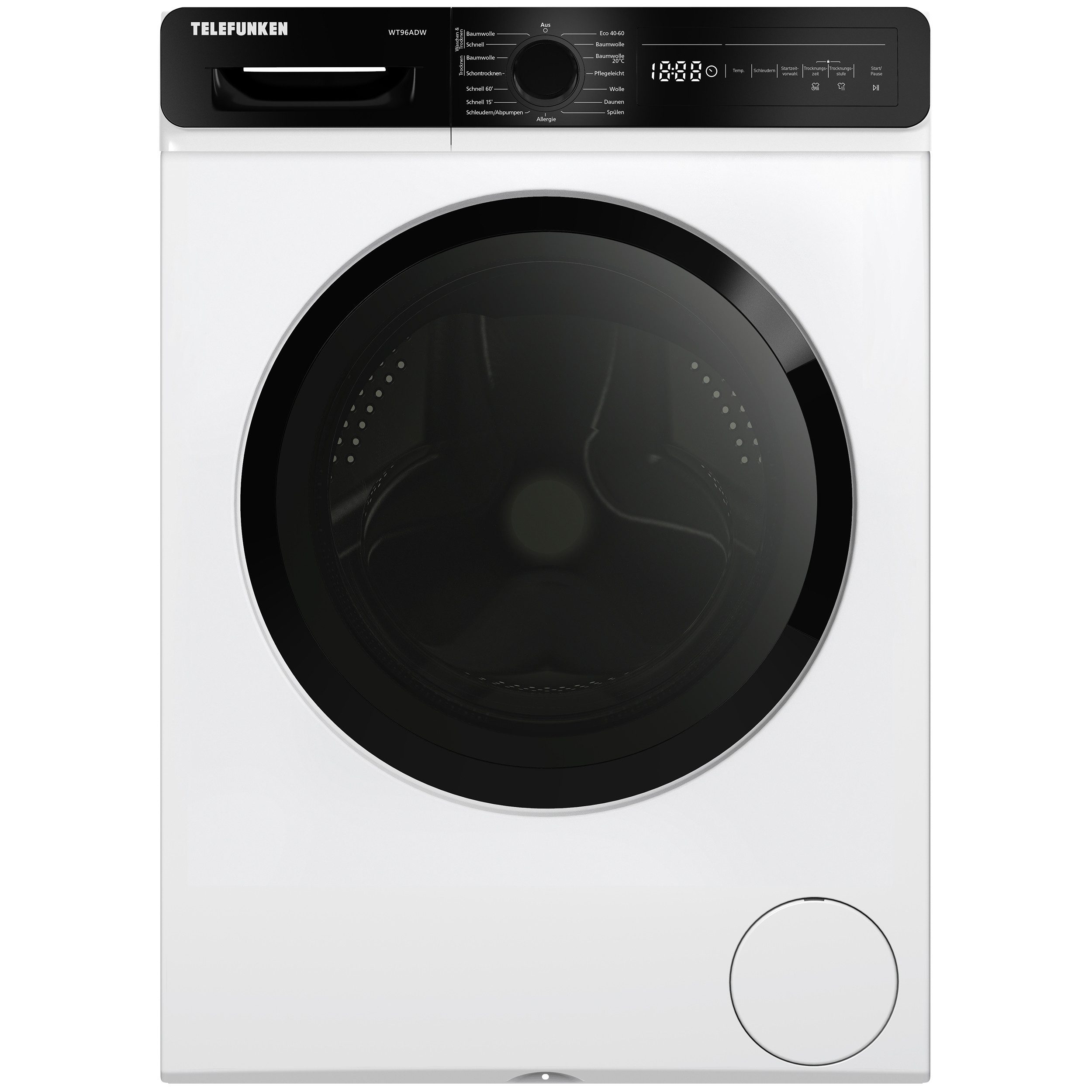 Mit der Telefunken WT96ADW Waschtrockner Kombi sparen Sie Platz und Zeit, ohne Kompromisse bei der Wasch- und Trocknungsqualität einzugehen. Perfekt für moderne Haushalte, die auf Effizienz und Komfort setzen.