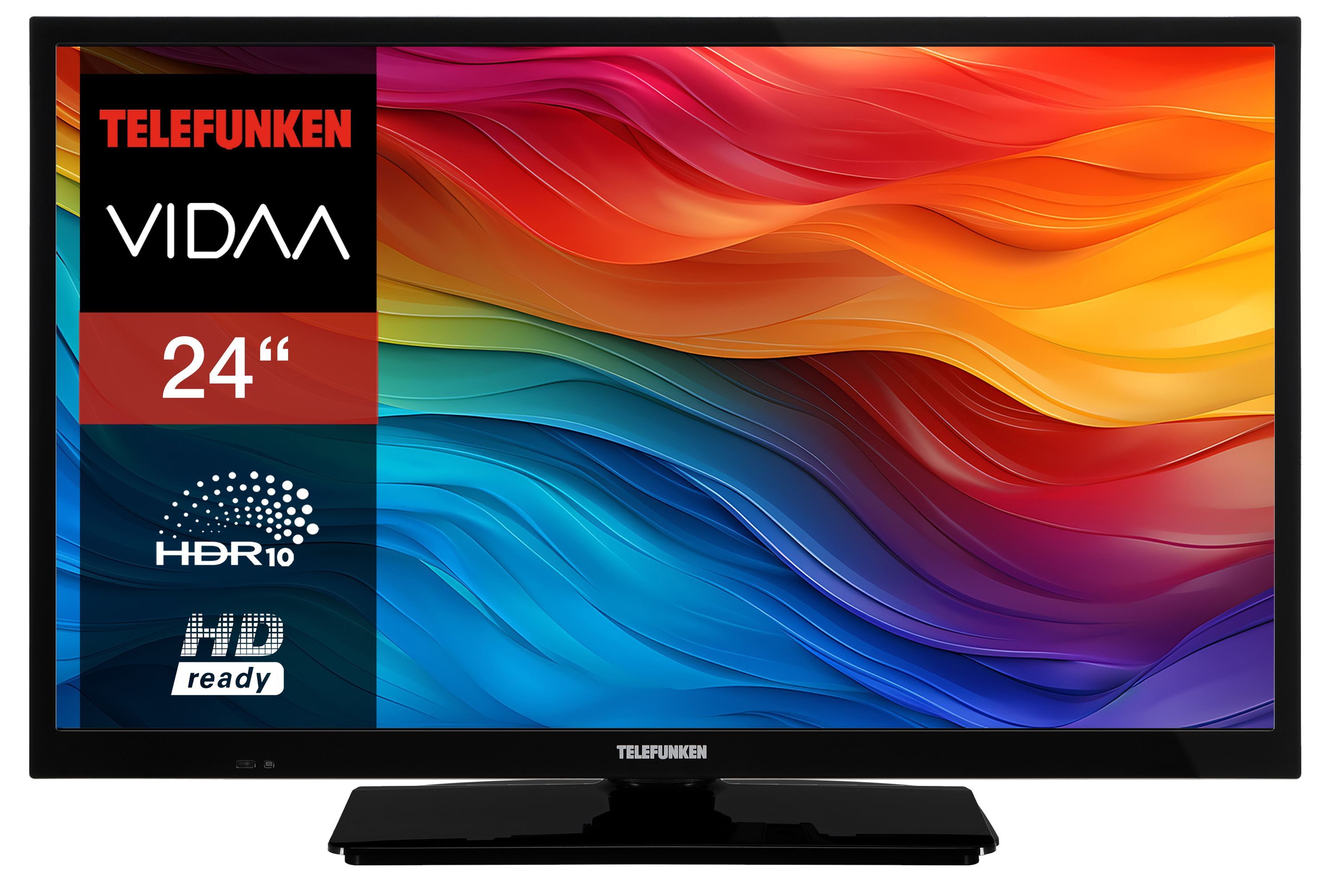 In elegantem Design vereint der XH24VP550M VIDAA Smart TV von Telefunken alles, was Fernsehen heute zum Erlebnis für Sie und Ihre Familie macht. Das auf eine Bildschirmdiagonale von 60 cm (24 Zoll) dargestellte Bild überzeugt in HD Auflösung. Der TV unterstützt außerdem HDR10 und liefert damit kontrastreiche Aufnahmen mit einer natürlichen Farbgebung und beeindruckender Detailschärfe. Dank integriertem Triple-Tuner DVB-C/T2/S2 empfangen Sie Fernsehprogramme über Satellit, Kabel oder Antenne direkt auf Ihrem TV, ganz ohne zusätzlichen Receiver. Außerdem sorgen zahlreiche Anschlüsse, wie 2x HDMI (CEC + ARC), USB mit Multimedia Player uvm. für multimediale Flexibilität und Vielfalt. Das VIDAA Betriebssystem hebt das smarte Fernsehzeitalter auf die nächste Stufe. Dank der vielfältigen Möglichkeiten, der einfachen Bedienbarkeit und einer großen Auswahl verschiedener Apps wie z.B. Netflix, Prime Video, Disney+, YouTube, DAZN uvm. werden Sie zum Baumeister Ihres ganz persönlichen Smart TVs.