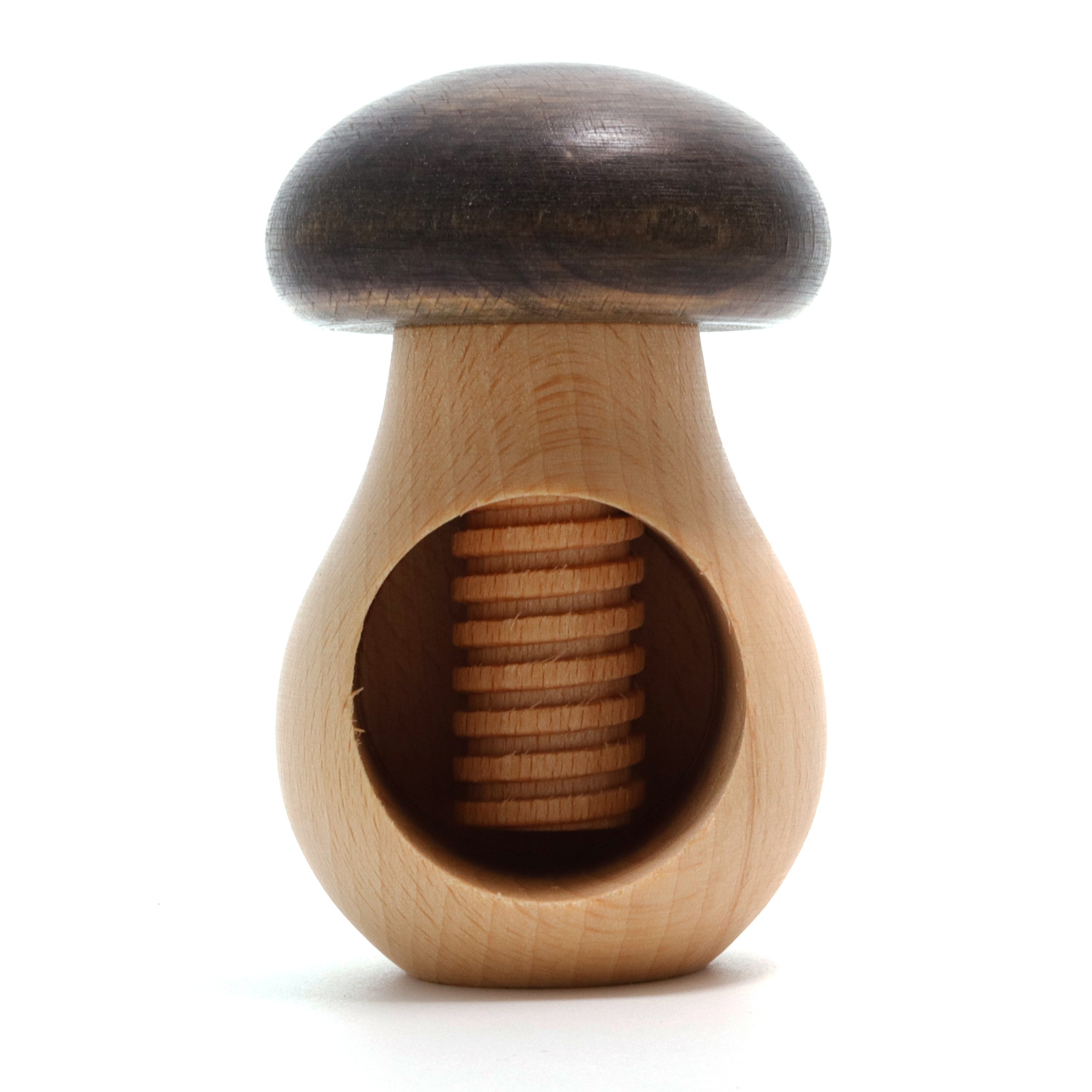 Dieser liebevoll handgefertigte Nussknacker in Pilzform verbindet charmantes Design mit kinderleichter Bedienung. Durch das geölte Schraubgewinde lässt sich jede Nuss ohne Kraftaufwand öffnen – leise, sanft und sicher.