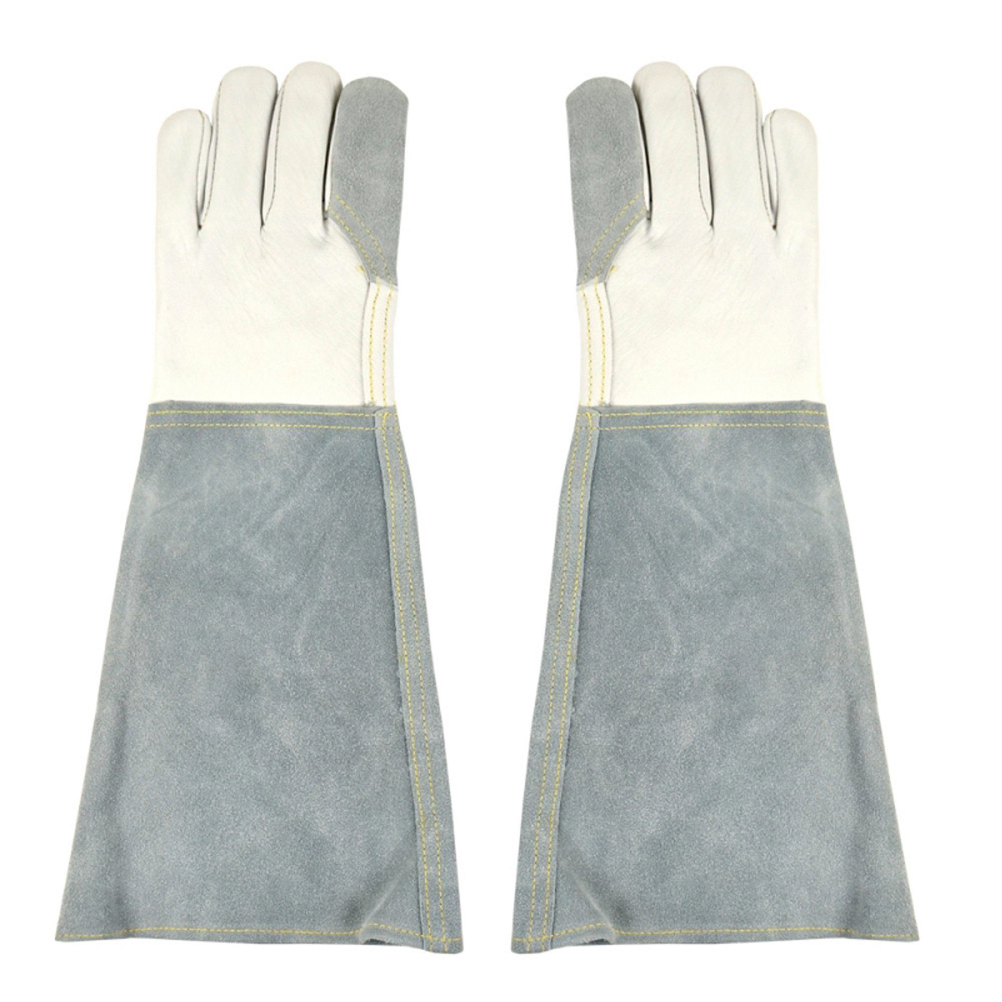 Diese Schutzhandschuhe bestehen aus widerstandsfähigem Leder und schützen Tierärzte vor Krallen- und Bissverletzungen durch Kleintiere wie beispielsweise Katzen oder kleine Vögel. Zusätzlichen Schutz bietet die Spaltlederverstärkung an Daumen, Zeigefinder und Innenband. Die Schutzhandschuhe aus Wildleder haben eine Длина von 45 cm und schützen dadurch neben den Händen auch die Unterarme. Die Handschuhe werden paarweise geliefert.