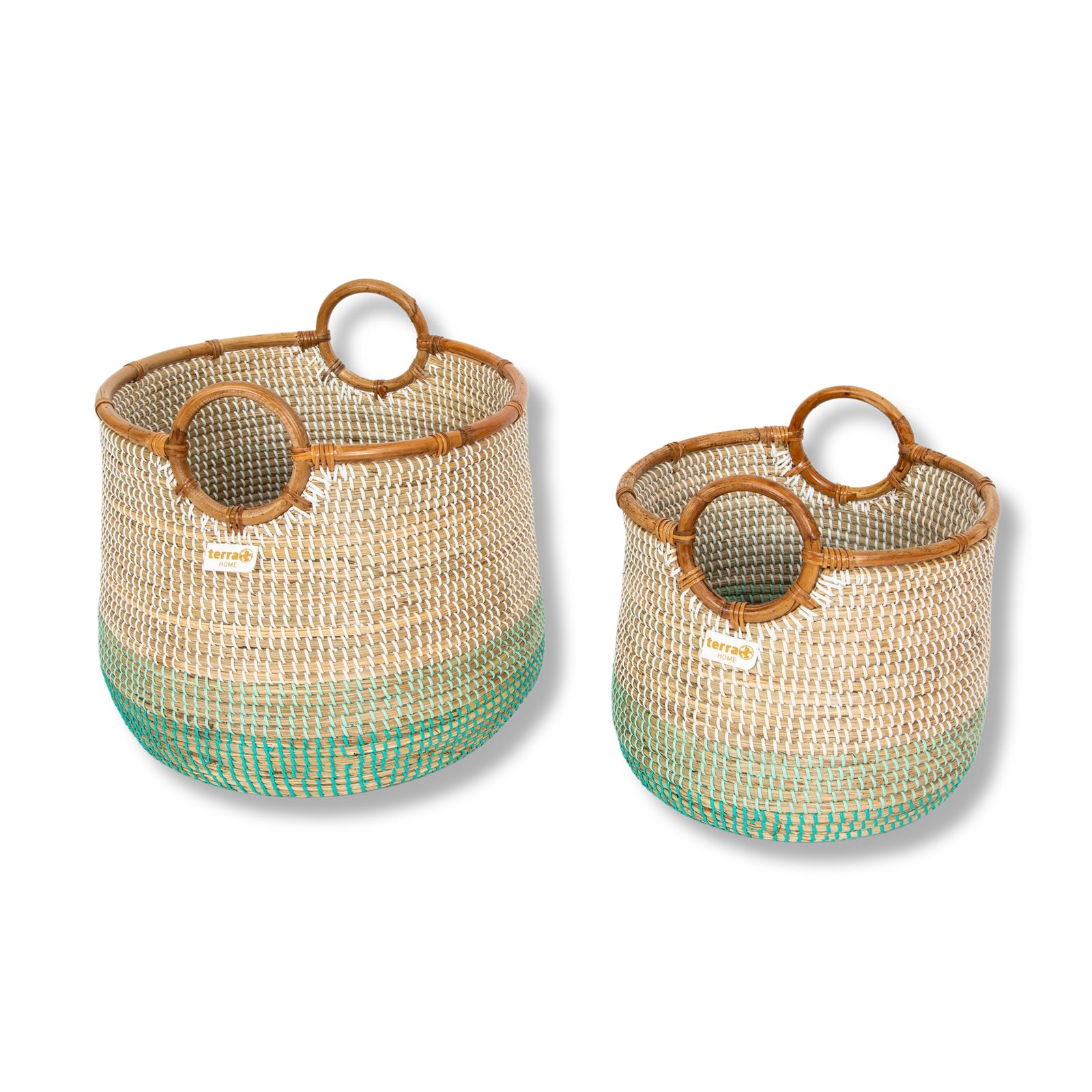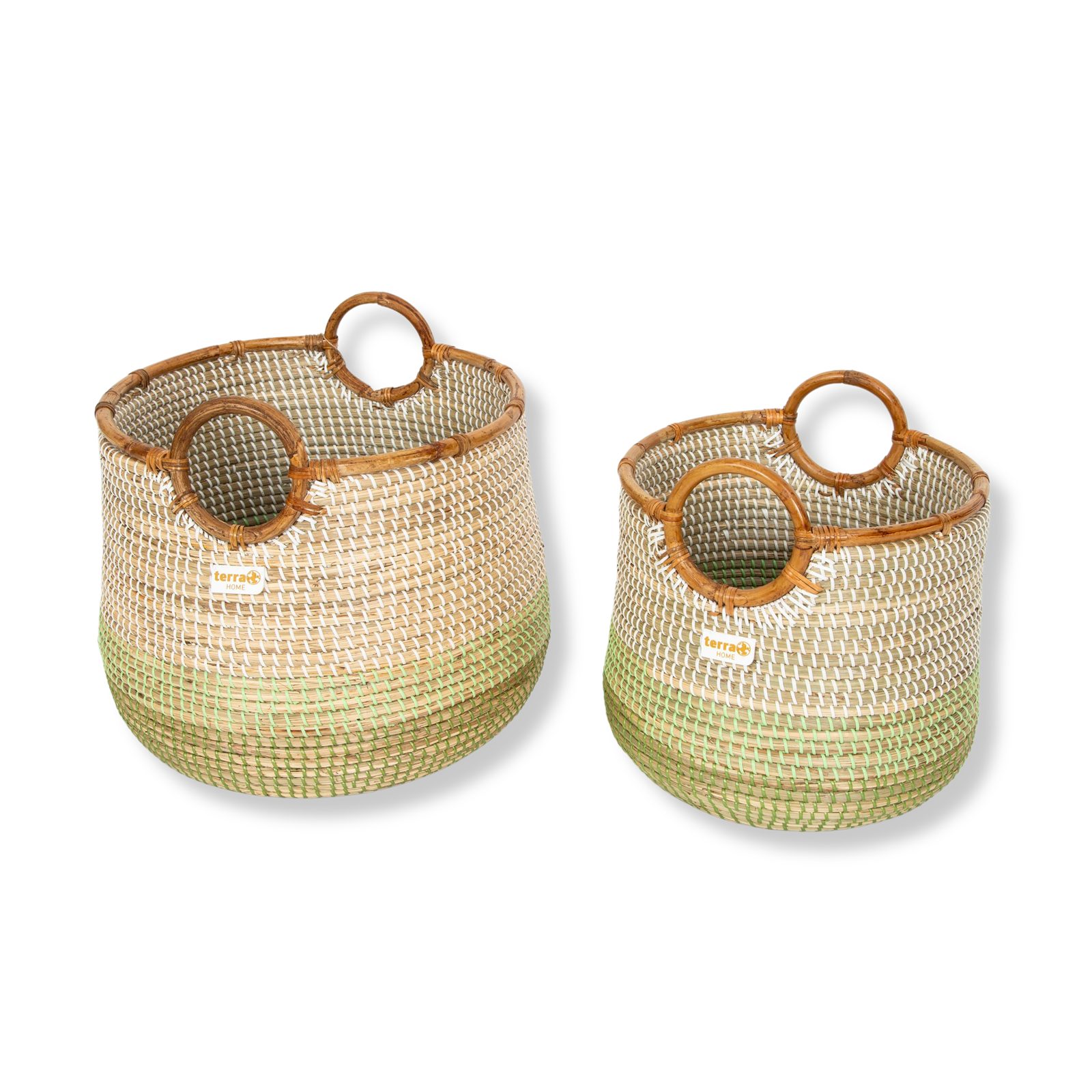 Hergestellt aus hochwertigem Seegras, einem nachhaltigen und langlebigen Material, bieten diese Körbe nicht nur eine praktische Aufbewahrungslösung, sondern verleihen Ihrem Raum auch einen Hauch von Natürlichkeit und Schönheit. Das Seegras wird sorgfältig geflochten, um eine robuste Struktur zu gewährleisten, die auch regelmäßigem Gebrauch standhält.