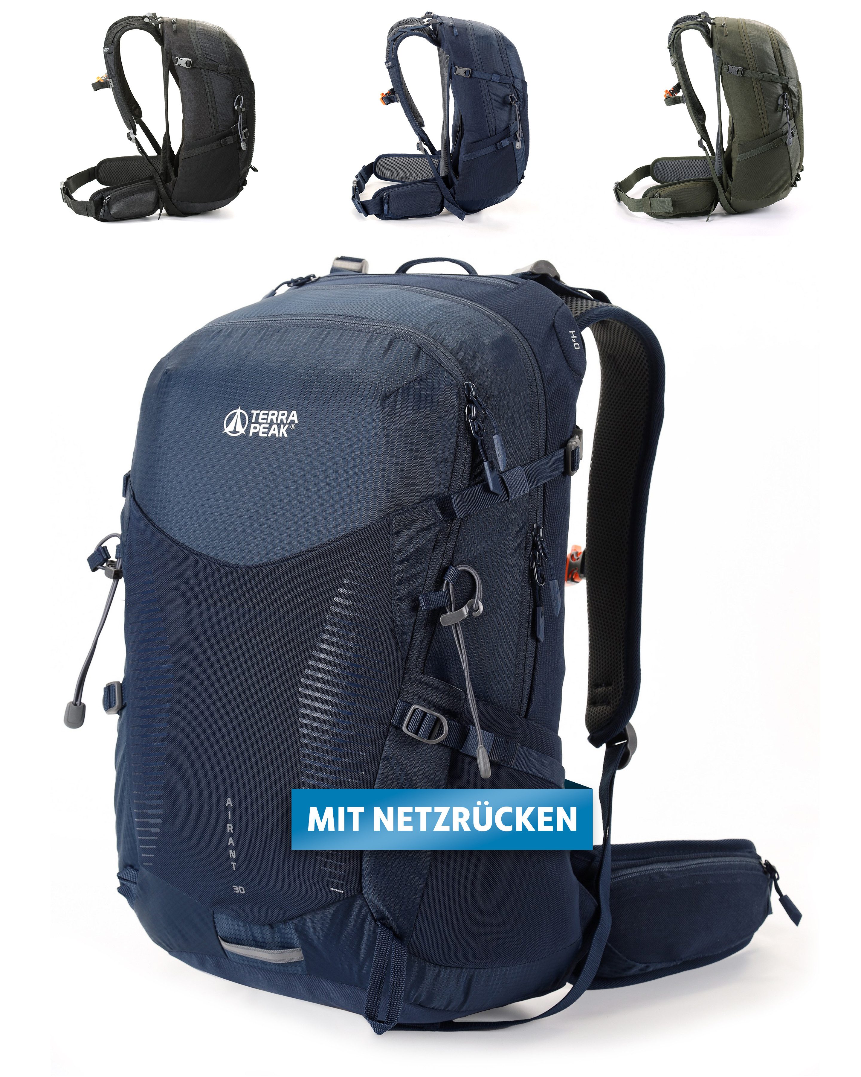 Terra Peak - Wanderrucksack Airant 30 Rucksack mittel-groß mit belüftetem Netzrücken und 30 Liter Volumen in schwarz für Sports & Outdoor. Dieser Trekkingrucksack ist mit einem Trinksystem ausgestattet und perfekt zum Wandern, Trekking, Backpacking, Trecking, Reisen, Fahrrad-fahren, Spazieren und Berg-Touren geeignet. Dieser wasserdichter Rucksack für Frauen und Männer ist ultra-leicht, ergonomisch, rückenschonend und hat ein Netzrücken für die perfekte Rückenbelüftung für längere Wanderungen. Er ist auch ideal als Camping Zubehör oder als Geschenk-Idee für jeden Backpacker, Hiker, Hiking und Pfadfinder. Die Rucksäcke mit dem Rückennetz sind äusserst ideal um am Rücken kaum zu schwitzen. Der 30l Backpack hat Fächer für eine Trinkflasche, Flaschenhalter, Trinkblase, Jacke, Regenjacke, Helm, Wanderstöcke, Zelt und vieles vieles mehr. Dieser Tagesrucksack (Daypack) ist mit einer Regenhülle (wasserdicht), Hüftgurt und Brustgurt ausgestattet. Er eignet sich für das gesamte Jahr im Sommer, Frühling, Winter und Herbst. Reise-Rucksäcke, Trekkingrucksäcke, Wanderrucksäcke und Bergrucksack mit extra hohem Tragekomfort und durch individuell anpassbare anatomisch vorgeformte und weichgepolsterte Schulterträger garantieren die Bequemlichkeit. Als Wander-Ausrüstung ist der Rucksack als perfektes Wander-zubehör und Begleiter bestens geeignet. Details: • Ergonomisch und bequem bei längeren Touren und Wanderungen • Garantiert kein Rücken schwitzen wegen dem Netz-Rücken und Rückenbelüftung • Fächer für die wichtigsten Utensilien und Equipment • Trinksystemhalterung für eine Trinkblase • Wasserfestes Material • Bestes Geschenk für Natur- und Camping-Liebhaber • Beste hiking backpacks für sie und ihn (unisex)