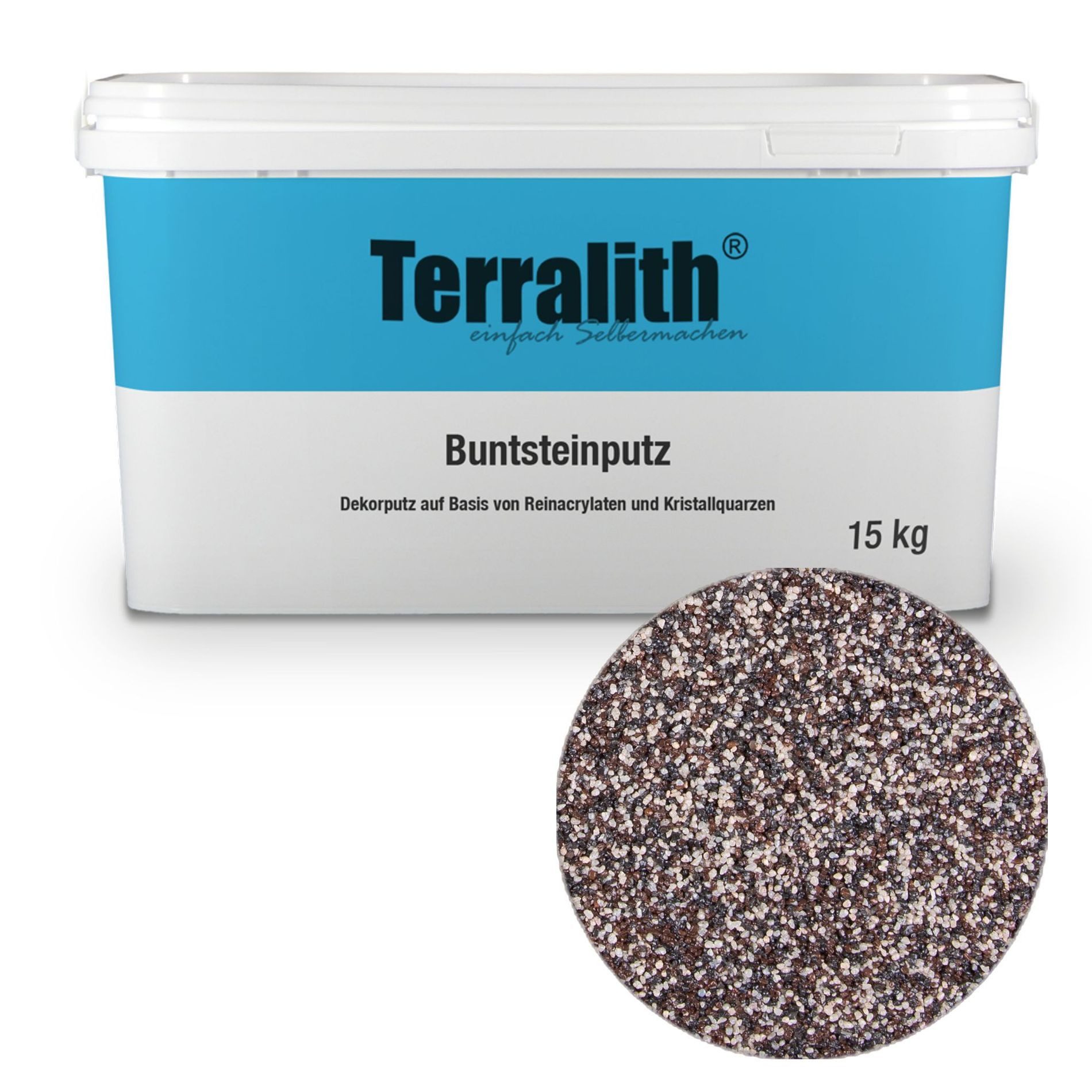 Terralith-Buntsteinputz ist ein verarbeitungsfertiger Dekorationsputz aus Marmor-Granulat bzw./ oder eingefärbter Körnung mit einem Reinacrylat als Bindemittel. Terralith-Buntsteinputz ist diffusionsfähig und langlebig. Er ist im Innen- und Außenbereich anwendbar.