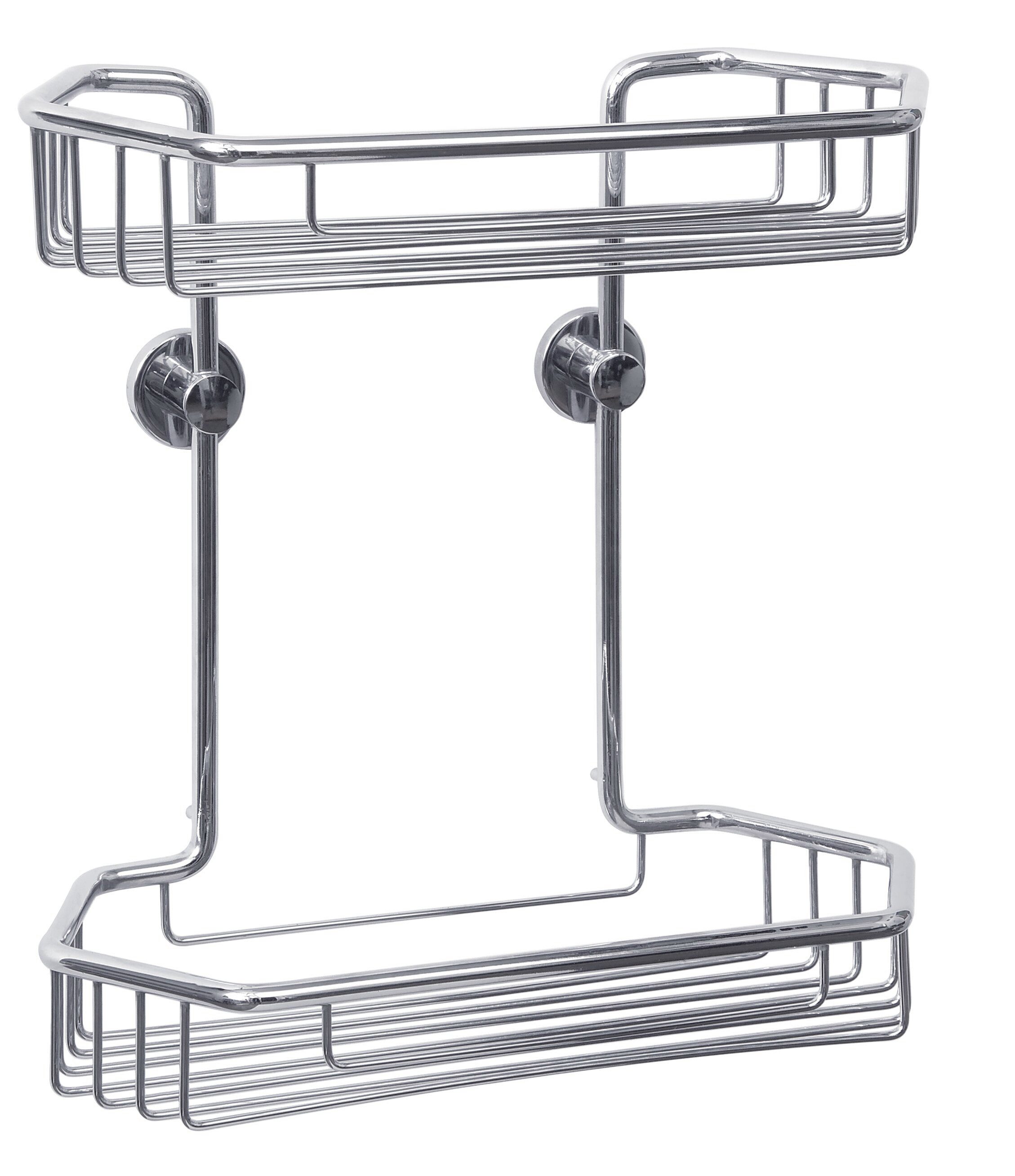 Lieferumfang | Duschregal rostfrei, zweistöckig, verchromt, inkl. Klebelösung |