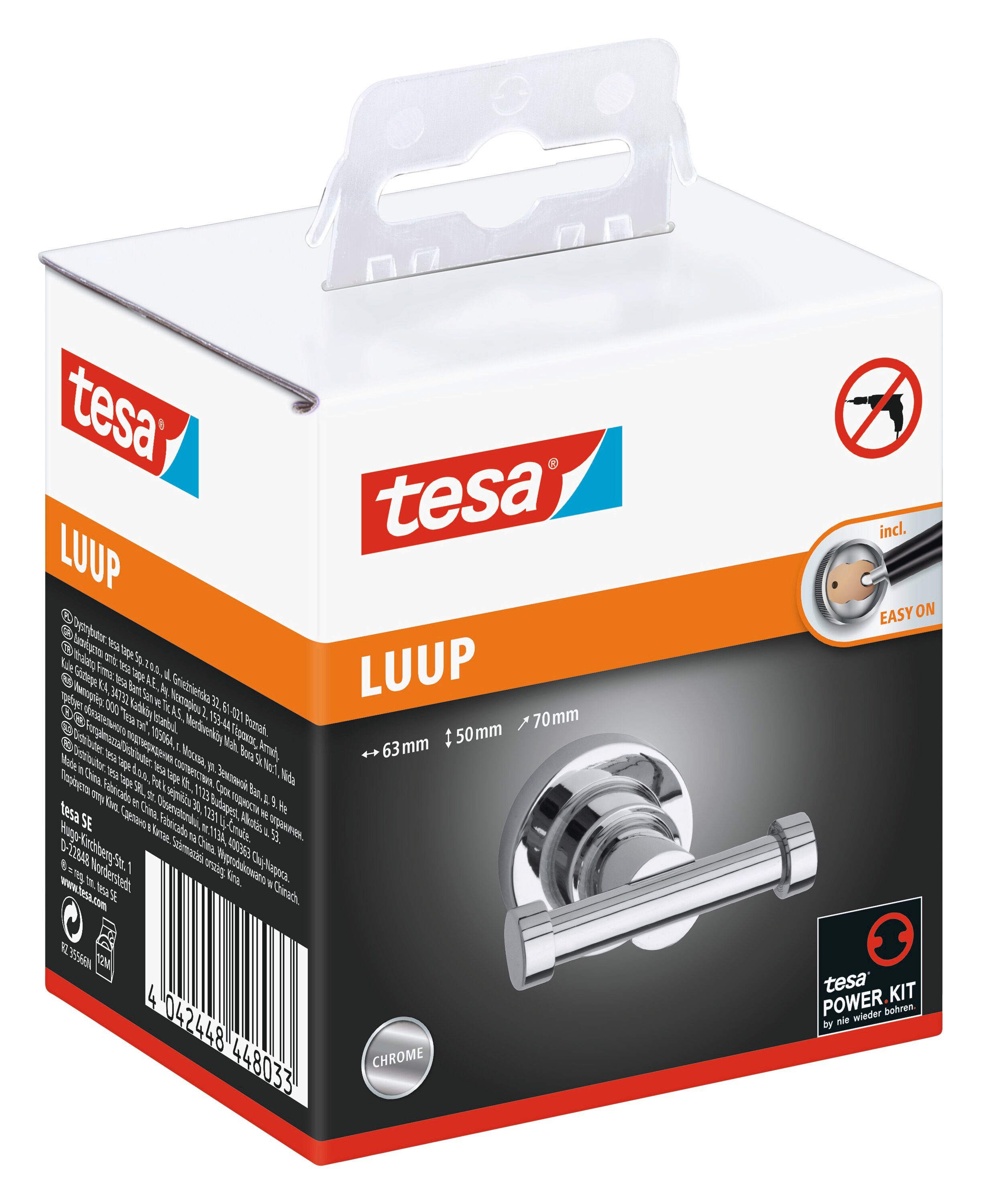 tesa LUUP Handtuchhaken, verchromter Edelstahl, ohne Bohren, inkl. Klebelösung