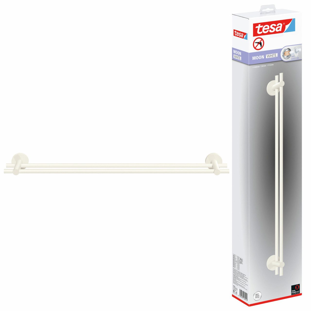 Die tesa® MOON WHITE Handtuchstange ist ein Badaccessoire, das mit hoher Funktionalität und einem ansprechenden Design überzeugt. Sie lässt sich bequem ohne Bohren anbringen. So vermeiden Sie die sonst typischen Schäden am Untergrund. Hier sorgen nicht Dübel und Schrauben, sondern die Klebelösung für einen dauerhaft sicheren Halt. Trotz der starken Klebeleistung können Sie die doppelte Handtuchstange jederzeit wieder ablösen. Mit einem neuen Adapter (BK20-2) ist eine Wiederverwendung problemlos möglich. Rein optisch dominieren runde Formen und die markante Edelstahloptik.Sicherheitshinweis zum enthaltenden tesa® Power Kit Klebstoff:Achtung! Bei der Verwendung kann gefährlicher lungengängiger Staub entstehen. Staub nicht einatmen.
