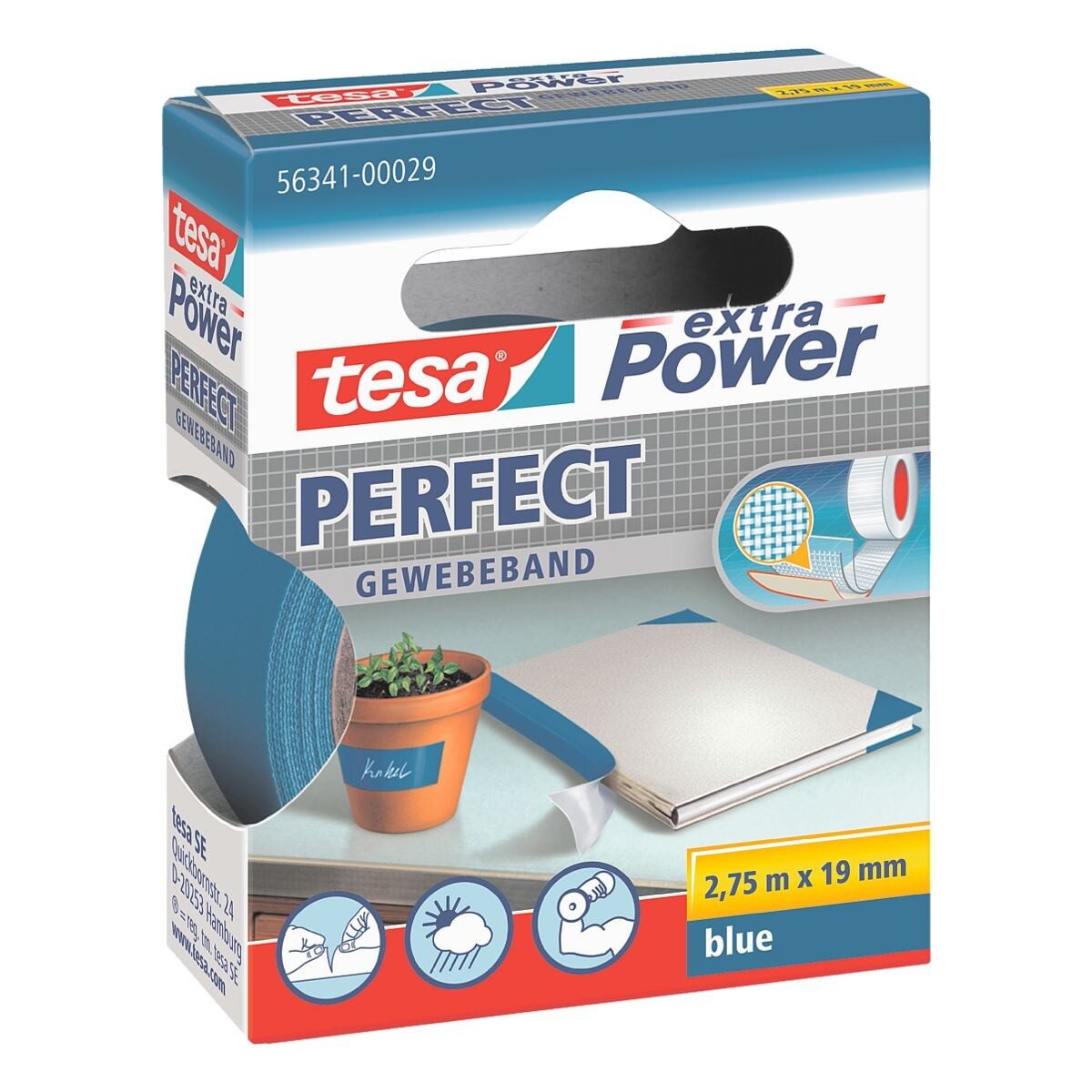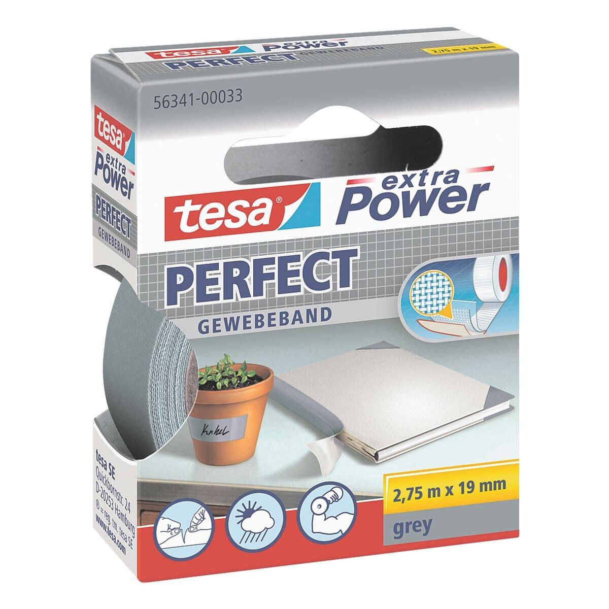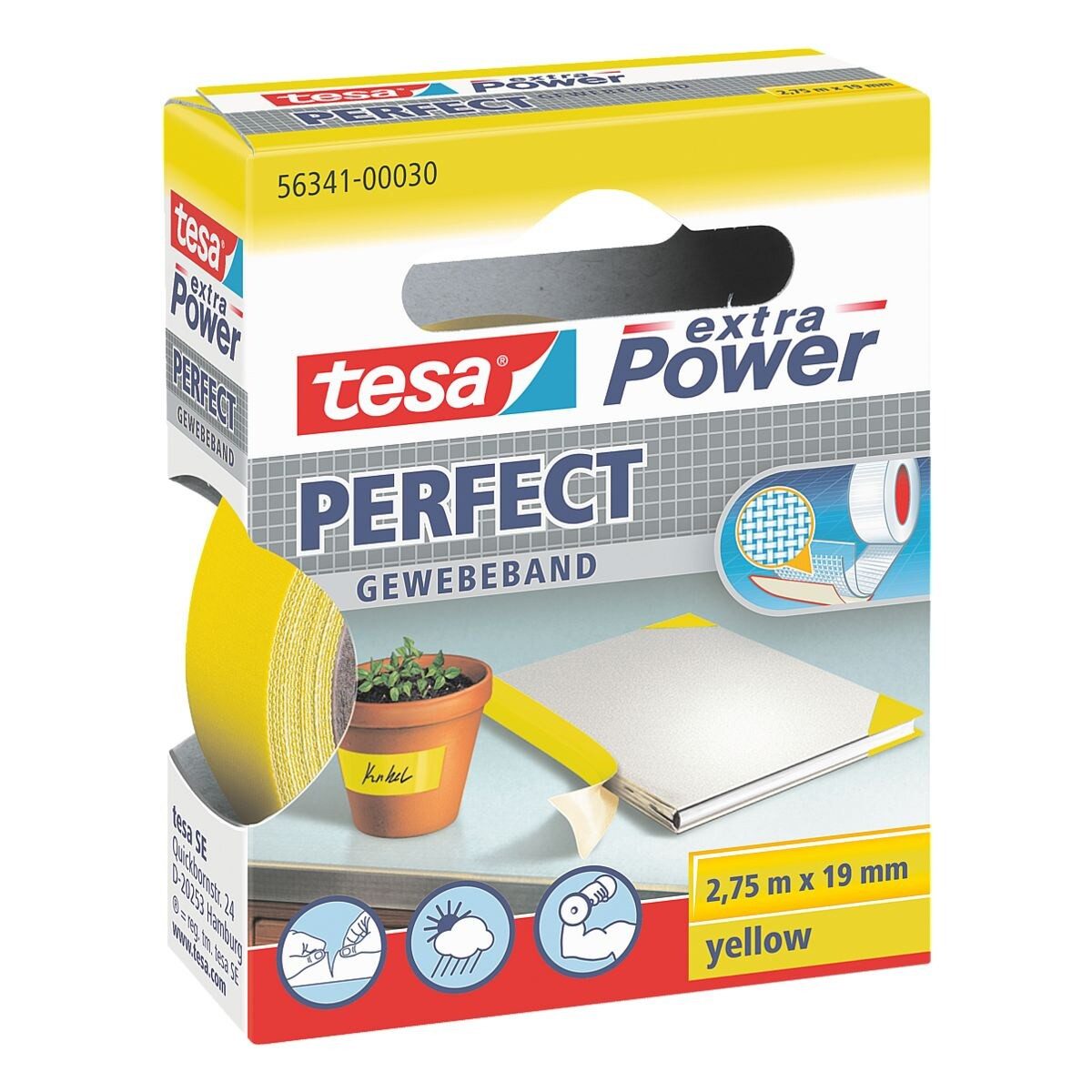 Gewebeband »Extra Power« 56341, für Isolier-, Reparatur- und Schutzarbeiten auf fettfreien, trockenen Materialien, hohe Reißfestigkeit, witterungsbeständig und beschriftbar, Maße (B/L): 19 mm/ 2,75 m, Inhalt pro Pack: 1 Rolle