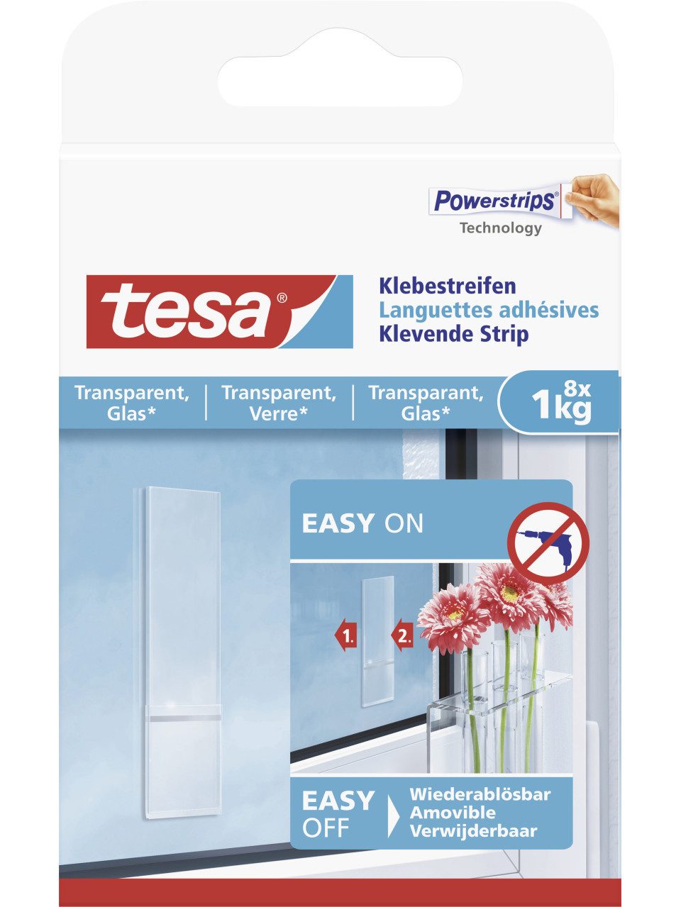 Die Klebestreifen basieren auf der tesa Powerstrips Technologie, sind transparent und auf Glas oder Fensterscheiben kaum zu erkennen. Daher können Sie Sie leichte Objekte wie Postkarten, Zeichnungen oder Fotos nahezu unsichtbar aufhängen. Nachdem Sie den Untergrund mit Fensterreiniger (ohne Silikon) oder Brennspiritus gründlich gereinigt haben, drücken Sie den Klebestreifen fest an - mindestens fünf Sekunden. Achten Sie bei der Anwendung darauf, dass Ihre Finger die offenen Klebeflächen nicht berühren. Ziehen Sie den Klebestreifen einfach vorsichtig und parallel zur Oberfläche nach unten. Es bleiben keine Rückstände haften. Hinweis: Nicht paralleles oder zu schnelles Abziehen könnte zum Reißen des Klebestreifens bzw. zu Beschädigungen des Untergrundes führen. Die transparenten Klebestreifen eignen sich auch zur Wiederverwendung des Klebehakens (1kg), mit dem Sie u. a. Lichterketten, Girlanden und andere Dekorationsobjekte aufhängen können.