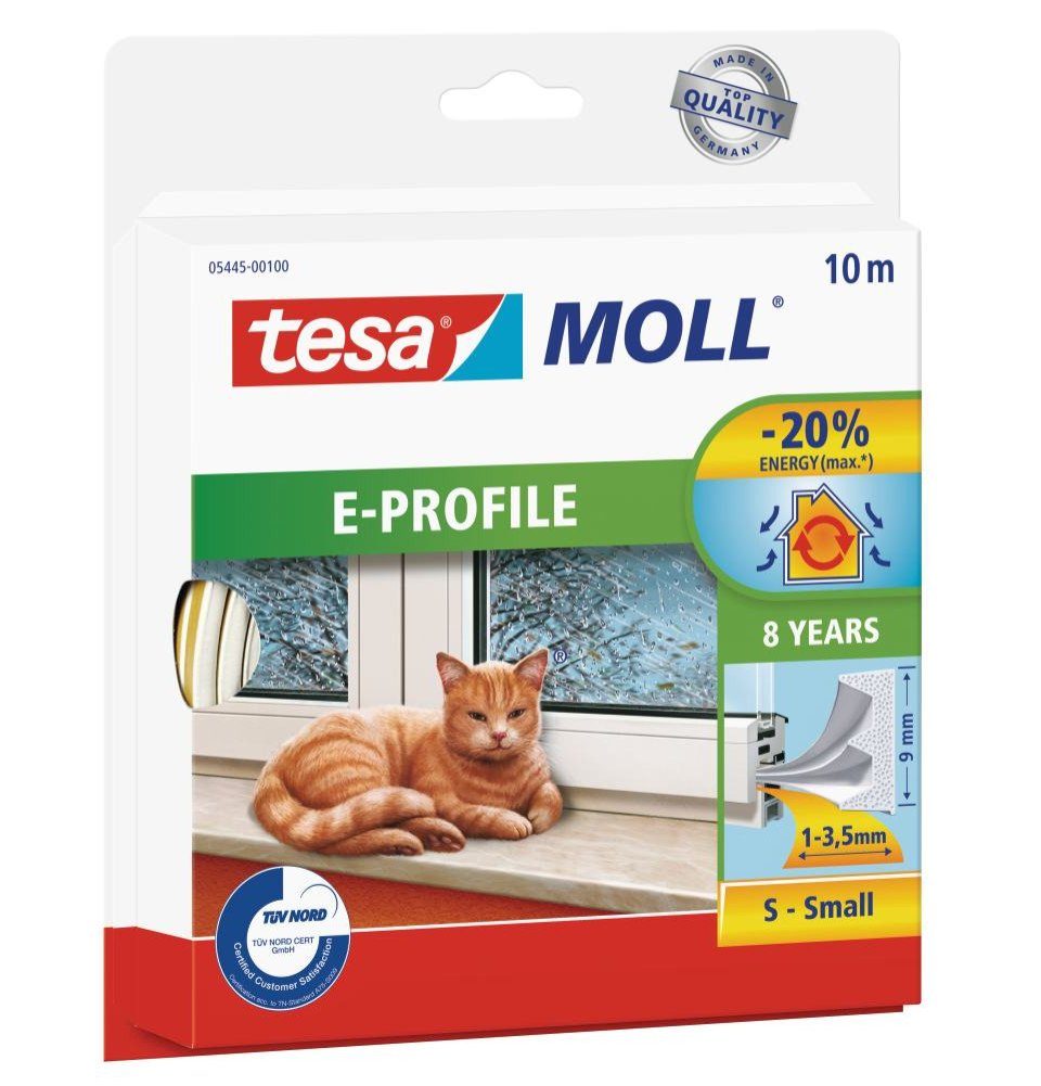 Mit der hochwertigen tesamoll® E-Profil Gummidichtung können Sie kleine Spalten in Fenstern und Türen abdichten und dadurch bis zu 20% Energie einsparen. Die Montage des Dichtungsstreifens ist ein echtes Kinderspiel. Sie müssen lediglich die Oberfläche gründlich reinigen und können dann die Gummidichtung anbringen. Außer einem Teppichmesser oder einer Schere benötigen Sie kein Werkzeug. Die Dichtung hat eine Mindestlebensdauer von acht Jahren und lässt sich nach dem Gebrauch problemlos wieder entfernen. Die Gummidichtung schützt nicht nur vor Zugluft, sondern auch vor Geräuschen und Gerüchen.