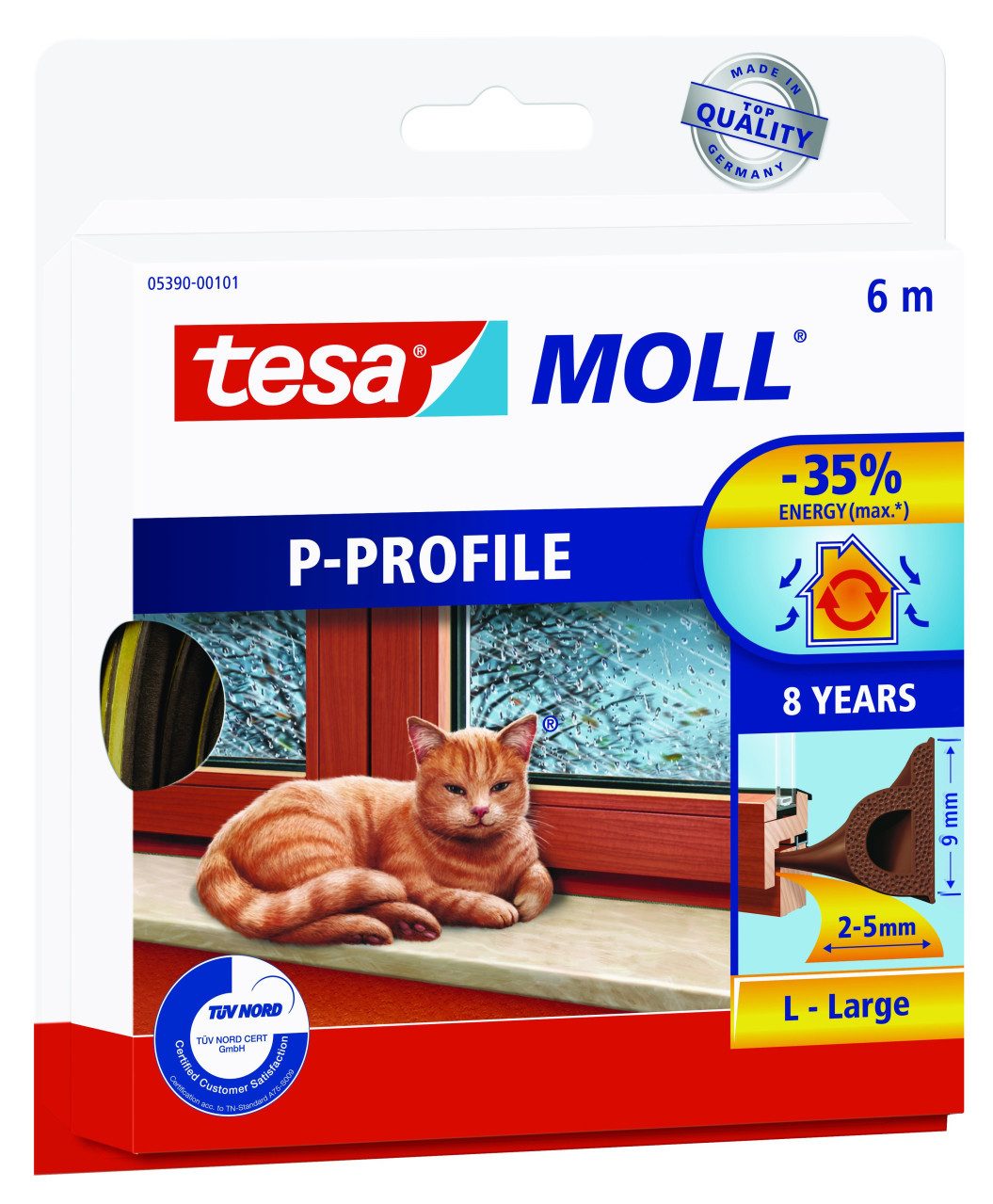 Mit der anpassungsfähigen tesamoll® P-Profil Gummidichtung können Sie größere Spalten in Fenstern und Türen abdichten und dadurch bis zu 35% Energie einsparen (bei entsprechender Spaltabdeckung). Dank der überlegenen tesa®-Klebetechnologie ist die Montage des Dichtungsstreifens ein echtes Kinderspiel. Außer einem Teppichmesser oder einer Schere benötigen Sie kein Werkzeug. Die Dichtung hat eine Mindestlebensdauer von vier Jahren und lässt sich nach dem Gebrauch problemlos wieder entfernen. Die Gummidichtung schützt nicht nur vor Zugluft, sondern auch vor Geräuschen und Gerüchen.