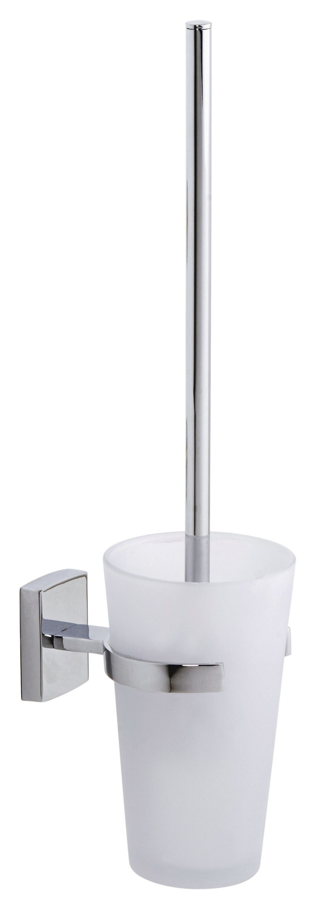Satiniertes Glas und verchromter Edelstahl harmonisch kombiniert: WC-Bürstengarnitur mit Wandhalterung, Behälter und WC-Bürste