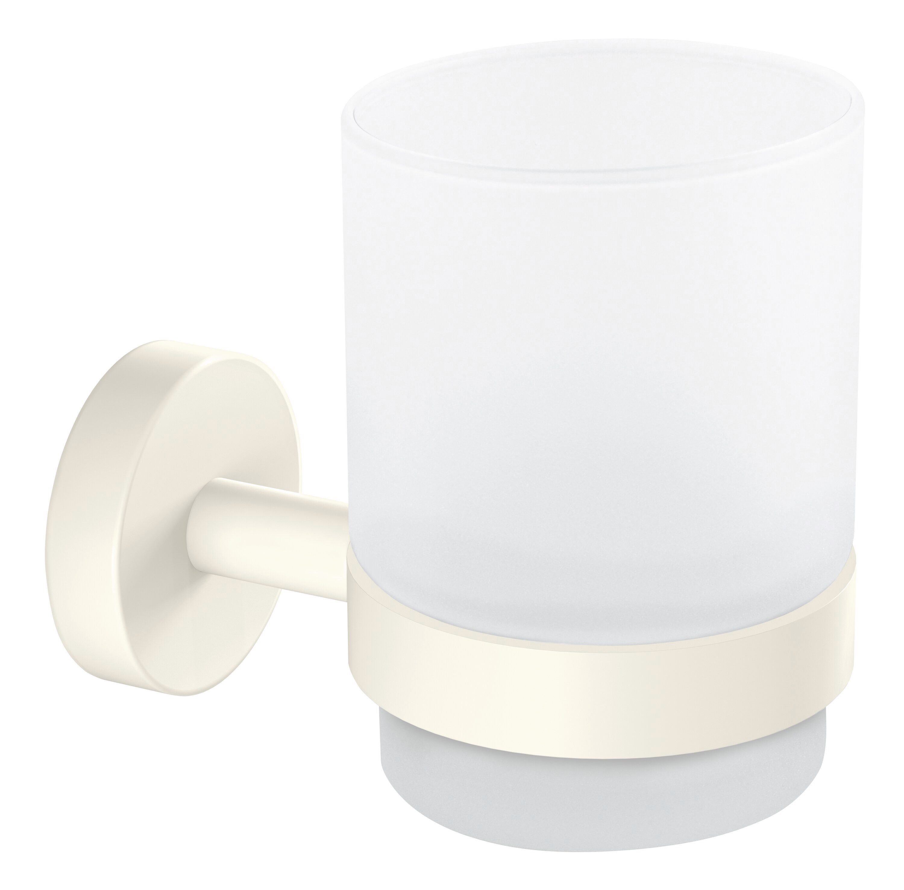 Der elegante Zahnputzbecher aus Satinglas mit Halter: Ideal für Bäder mit Farbkonzept fügt er sich harmonisch ins monochrome Bad - jedoch auch als Kontrast hervorragend kombiniert