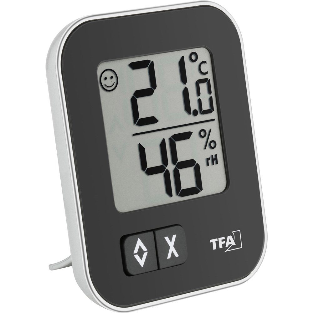 Zuhause Wohlfühlen: Zwei Drittel seiner Lebenszeit verbringt der Mensch mindestens in Innenräumen. Ob wir uns dort wohl und behaglich fühlen, hängt in hohem Maße von der Qualität der Raumluft ab. Mit dem modernen Thermo-Hygrometer "Moxx" können Sie Temperatur und Luftfeuchtigkeit einfach im Blick behalten und durch gezieltes Heizen und Lüften regulieren. So schaffen Sie sich ein behagliches und gesundes Wohnklima uns sparen sogar Heizkosten.Schimmelpilze und Milben breiten sich bei hoher Luftfeuchtigkeit erst so richtig aus. Aber auch eine zu trockene Raumluft kann unser Wohlbefinden in verschiedener Hinsicht beeinträchtigen. Haut und Atmungsorgane werden belastet und Infekte, Всеrgien und Asthma haben ein leichtes Spiel. Studien haben gezeigt, dass eine relative Feuchtigkeit der Raumluft von 40 bis 60% Krankheitserreger und damit Atemwegserkrankungen minimiert. Auch Haustiere, Pflanzen und empfindliche Gegenstände brauchen das richtige Klima: Nicht nur Menschen, auch Haustiere, Pflanzen und empfindliche Gegenstände brauchen die richtigen klimatischen Bedingungen. Hygroskopische Materialien wie Holz, Papier, Leder und Textilien reagieren auf Schwankungen in der Luftfeuchtigkeit.