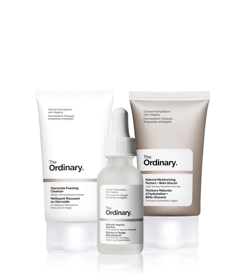 Inhaltsstoffe | Glucoside Foaming Cleanser: Aqua (Water), Decyl Glucoside, Coco Glucoside, Xanthan Gum, Tocopherol, Phytic Acid, Benzyl Alcohol, Ethylhexylglycerin. Salicylic Acid 2% Solution: Aqua (Water), Saccharide Isomerate, Cocamidopropyl Dimethylamine, Salicylic Acid, Hydroxyethylcellulose, Polysorbate 20, Citric Acid, Sodium Citrate, Sodium Hydroxide, Phenoxyethanol, Chlorphenesin. Natural Moisturizing Factors + Beta Glucan: Aqua, PPG-24-Glycereth-24, Propanediol, Betaine, Beta-glucan, Phospholipids, Sodium PCA, Sodium Lactate, Glucose, Fructose, Maltose, Trehalose, Urea, PCA, Sphingolipids, Glutamic Acid, Allantoin, Serine, Alanine, Glycine, Lysine HCl, Threonine, Arginine, Proline, Sodium Hyaluronate, Xylitylglucoside, Anhydroxylitol, Glycerin, Xylitol, Acrylates/C10-30 alkyl Acrylate Crosspolymer, Citric Acid, Sodium Hydroxide, Sodium Citrate, Aminomethyl Propanol, PEG-30 Dipolyhydroxystearate, Trideceth-6, Sodium Chloride, Pentylene Glycol, Anisic Acid, Tocopherol, Phenoxyethanol, Chlorphenesin. |