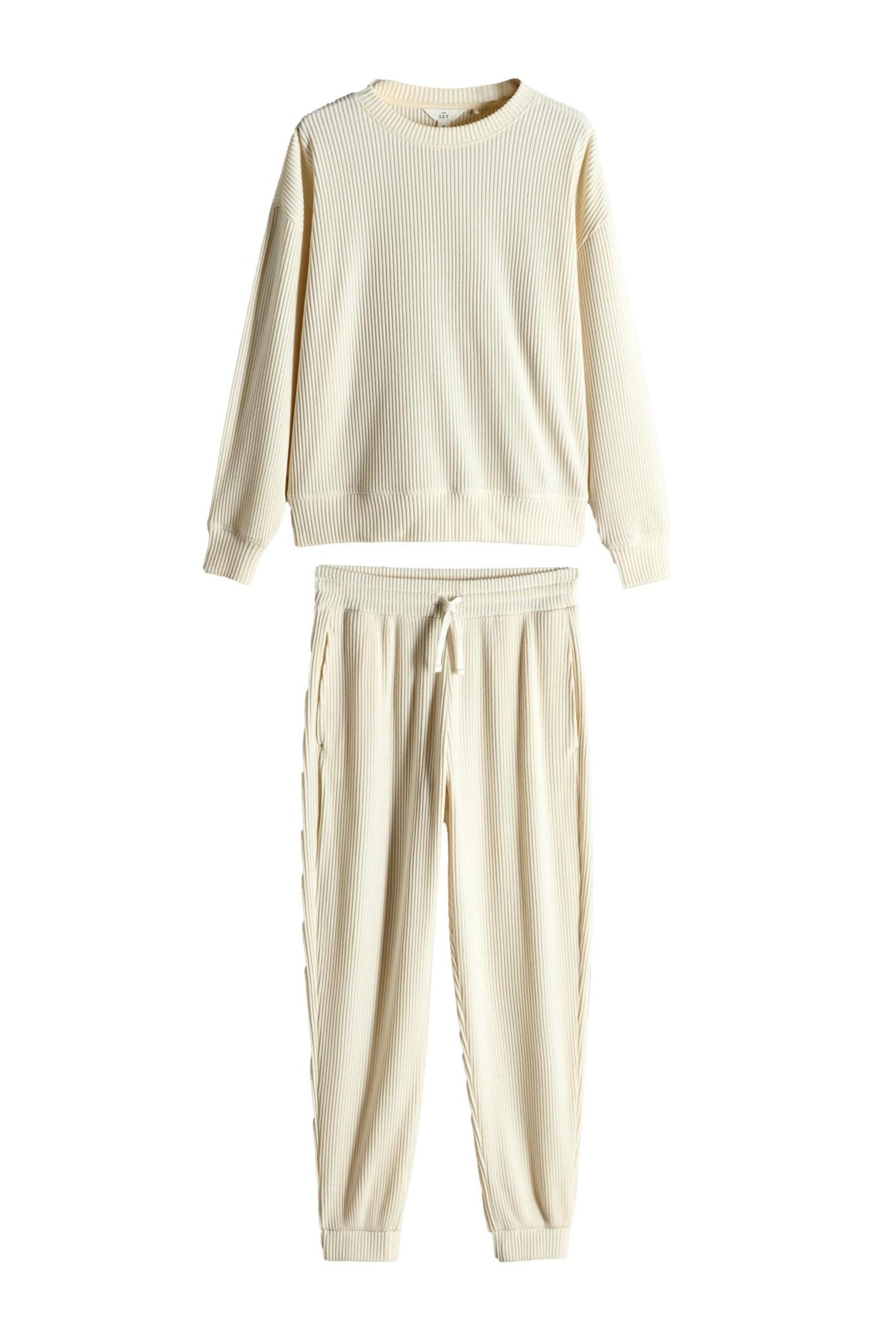 Loungeanzug The Set geripptes Lounge-Set, Sweatshirt + Jogger