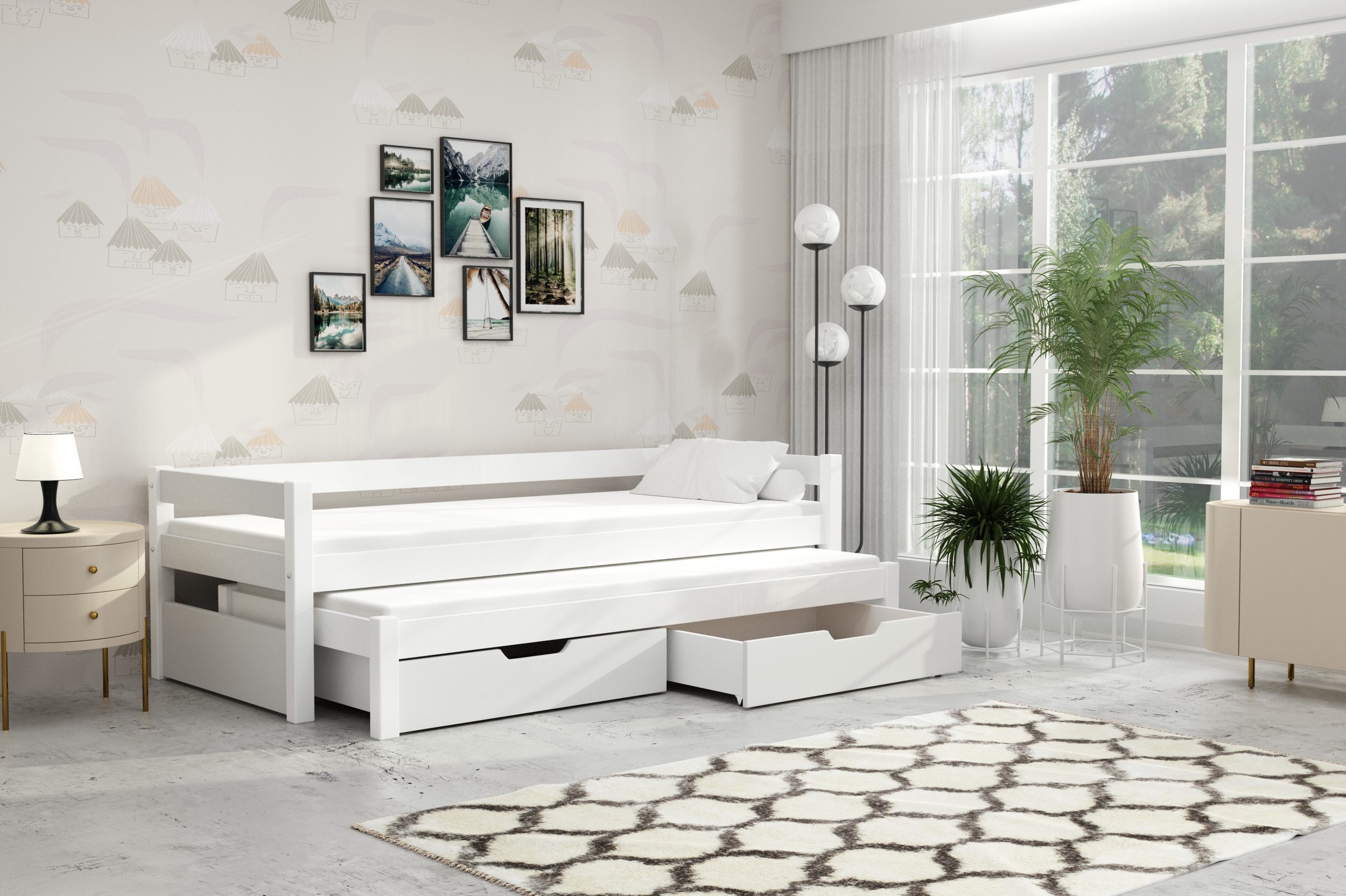 Mein Sohn hat sich riesig gefreut, Weiches Holz, in den großen Schubkästen unten wäre sicherlich eine Querstreben für mehr Stabilität schön gewesen, die Führung des Bettes und der Schubkästen ist etwas tricky und muss gaaanz gerade reingeschoben werden, dass ist für kleine Kinderhände etwas schwierig. Matratzen recht hart aber Gewohnheitssache. Für den Preis, mit Rollrosten und 2 Matratzen jedoch sicherlich unschlagbar