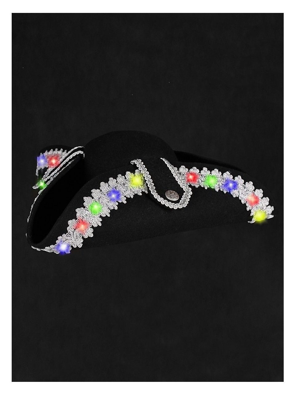Der helle Wahnsinn – ganz besonders im Dunkeln! Dieser schwarze LED Hut mit Silberborte begeistert mit seinen zuschaltbaren, bunt blinkenden Leuchtdioden.