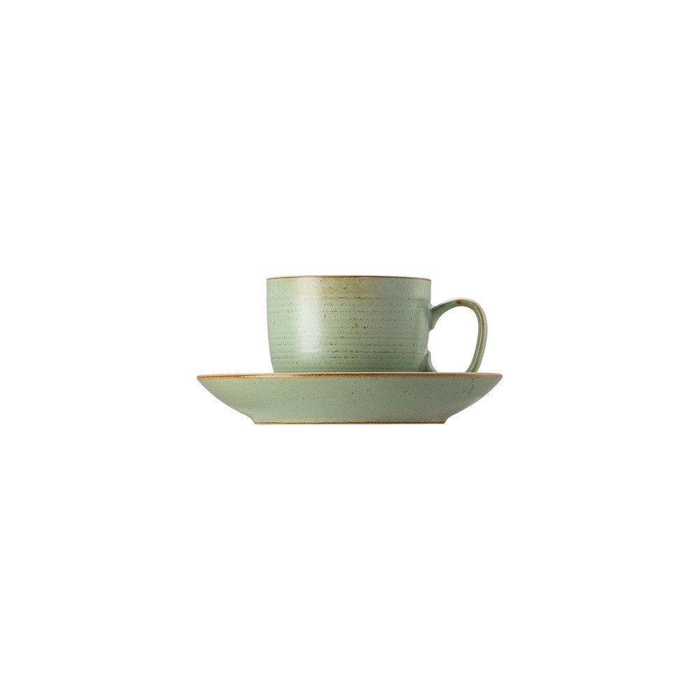 Genießen Sie Ihren Cappuccino in stilvoller Eleganz mit der Thomas Nature Leaf Cappuccinotasse + Untertasse. Dieses 2-teilige Set vereint natürliche Schönheit mit funktionalem Design. Die Cappuccinotasse hat einen Durchmesser von 8,2 cm und eine Höhe von 7,2 cm, mit einem Fassungsvermögen von 0,27 l, während die Untertasse einen Durchmesser von 16,0 cm hat. Der Farbton Leaf aus der Thomas Nature Kollektion, inspiriert von frischen Salbeiblättern, verleiht Ihrer Kaffeepause eine harmonische und beruhigende Note.