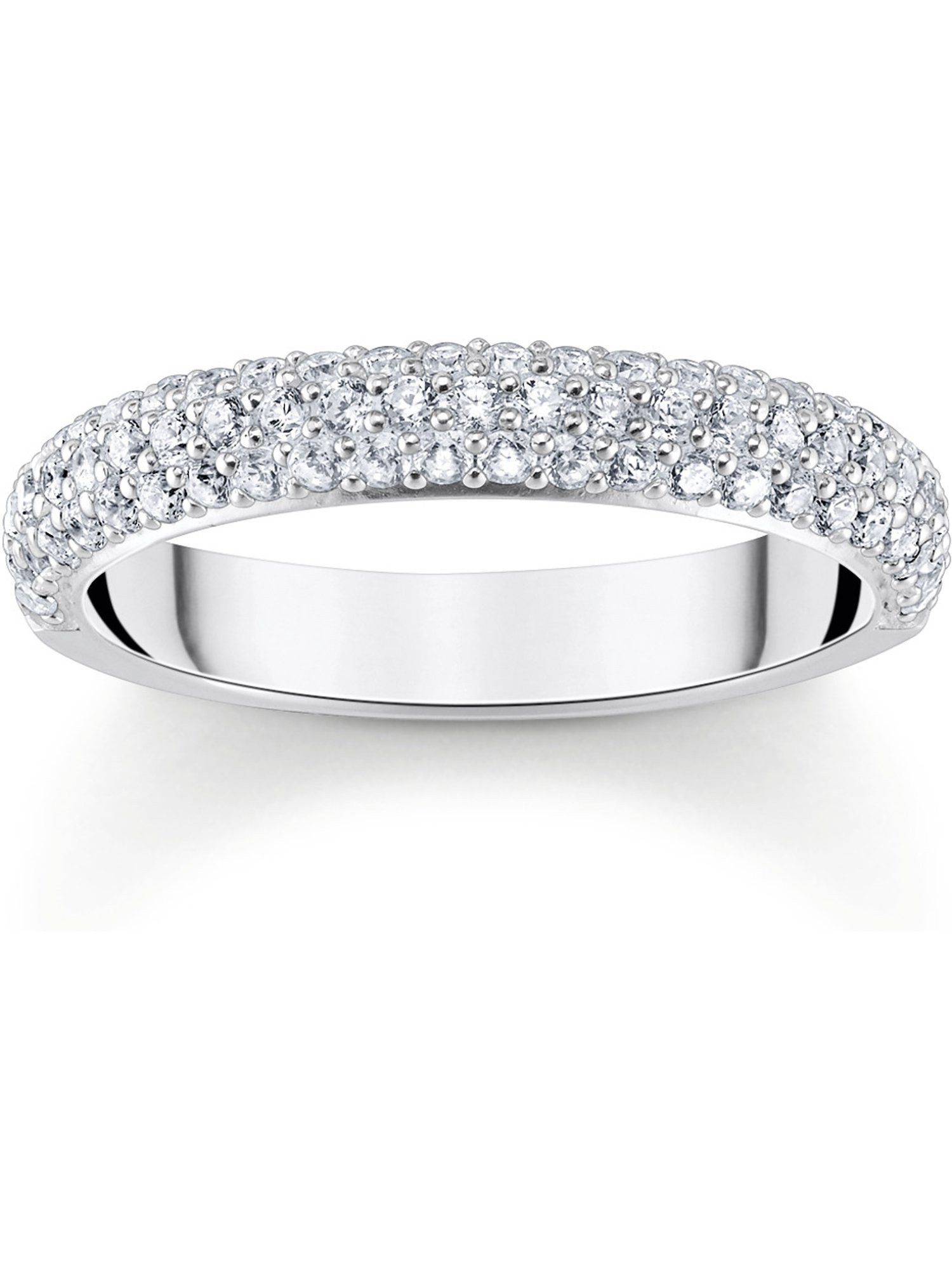 Eleganter Damenring von Thomas Sabo aus 925 Silber für Damen, besetzt mit Zirkonia als funkelnder Eyecatcher. Die Edelsteinfarbe des Zirkonia ist ein klares, strahlendes Weiß. Als neutraler Farbton passt der Ring so zu einer Vielzahl an Outfits und Looks, dennoch ist das Glitzern und Funkeln ein Blickfang. Die polierte Oberfläche verleiht einen edlen Schimmer. Ein Ring, der genauso facettenreich ist wie du – perfekt, um deinen ganz eigenen Stil zu zeigen.