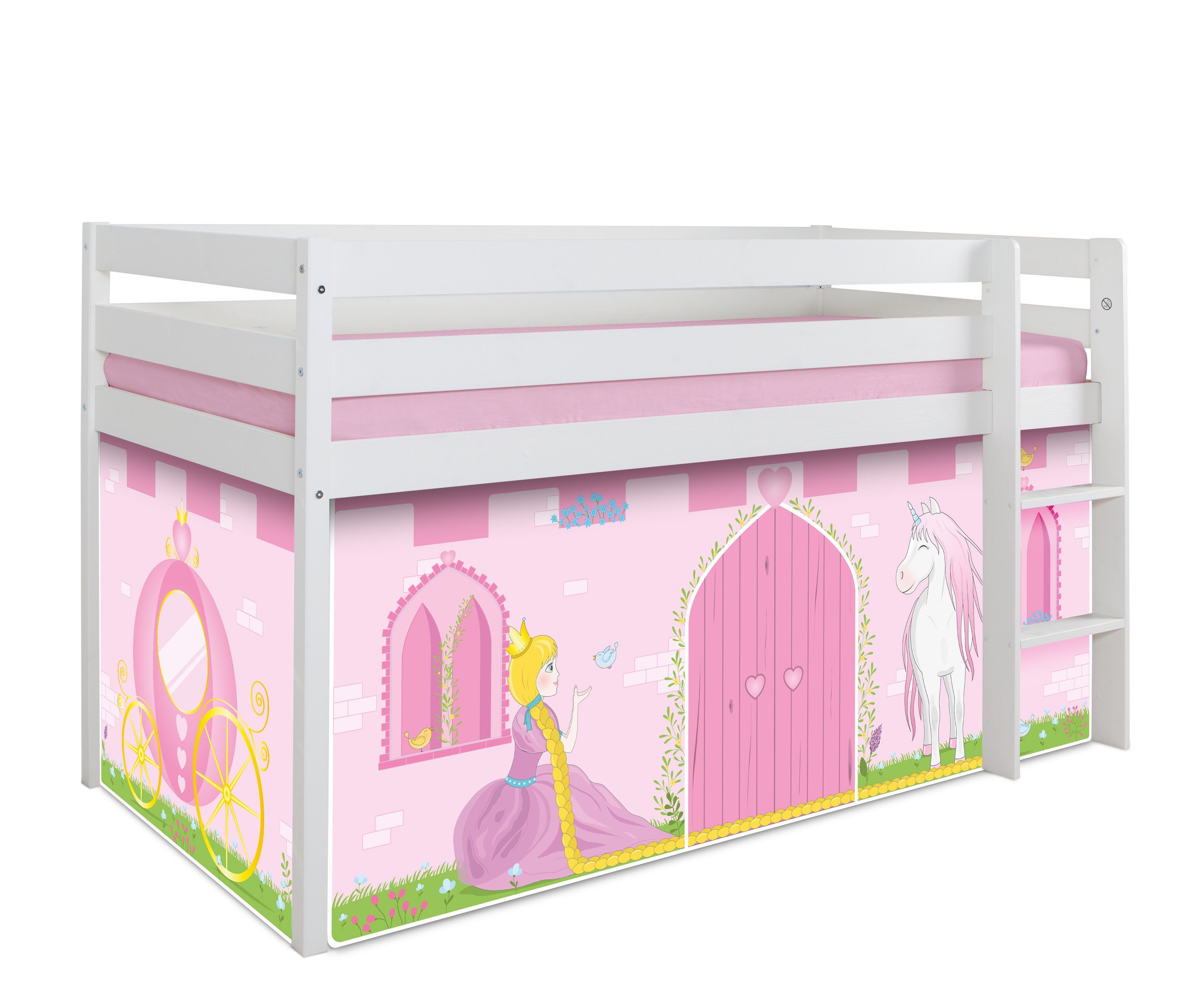 Lieferumfang | Hochbett inkl. Vorhangstoff "Prinzessin Liora", Montagematerial und Montageanleitung (ohne Rollrost und Matratze) |