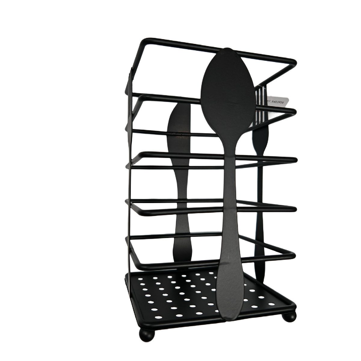 Der quadratische Küchenorganizer nutzt den Platz optimal und eignet sich ideal für kleine Küchen. Das schlichte, schwarze Design fügt sich harmonisch in jede Einrichtung ein.
