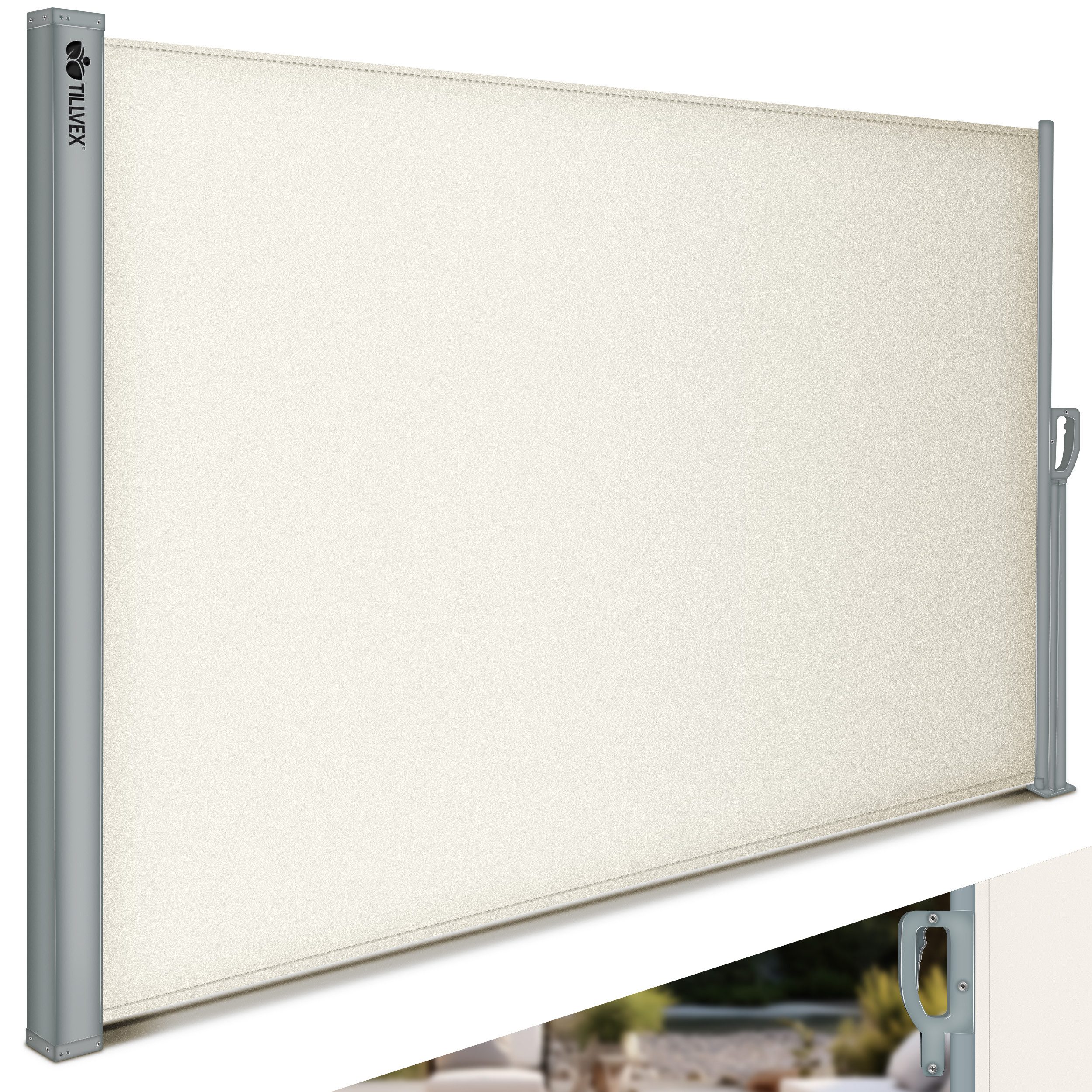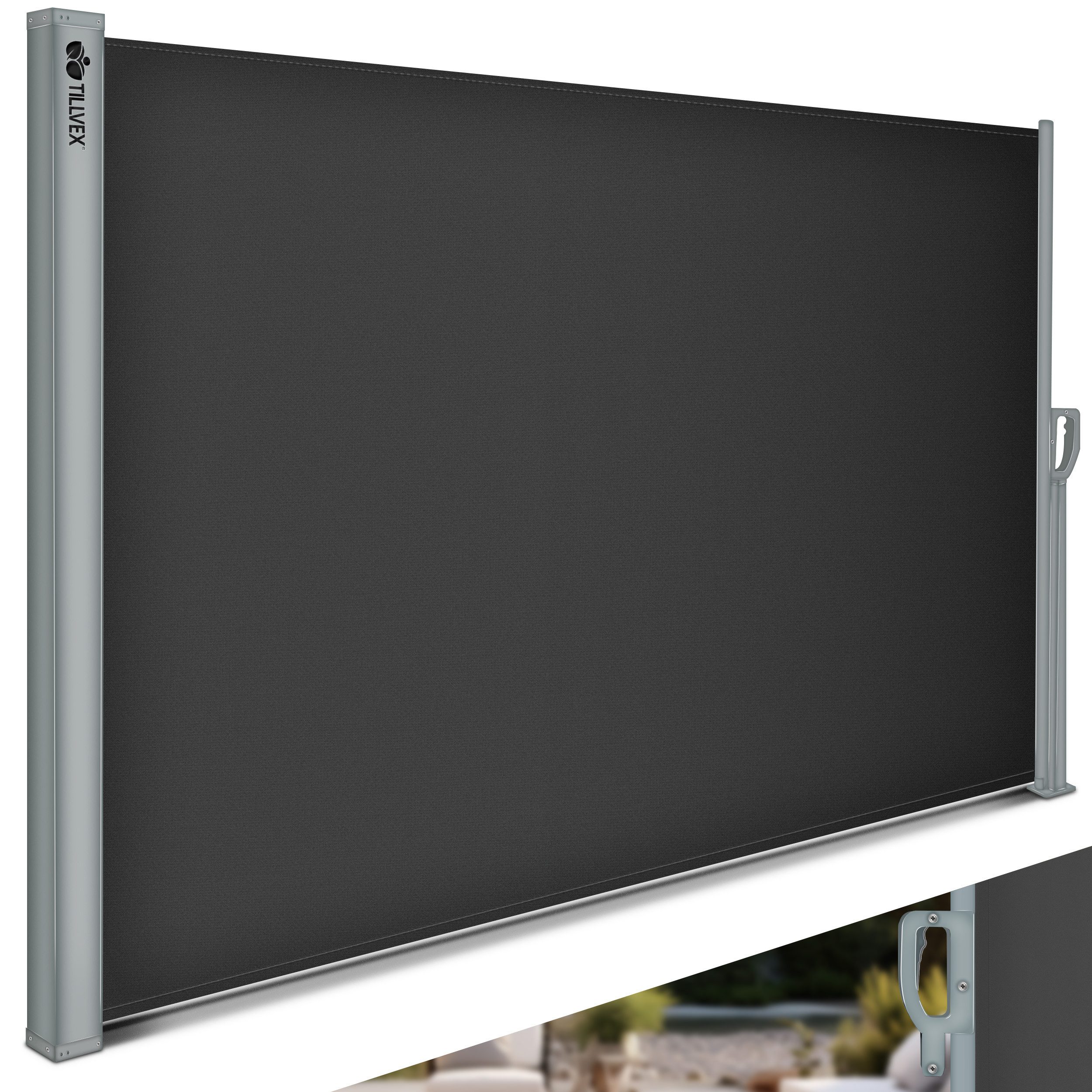 tillvex® Seitenmarkise ausziehbar & blickdicht | Sichtschutz für Balkon, Garten & Terrasse | Seitenrollo mit Wandhalterung | Sonnenschutz aus rostfreiem Stahl | Markise Windschutz