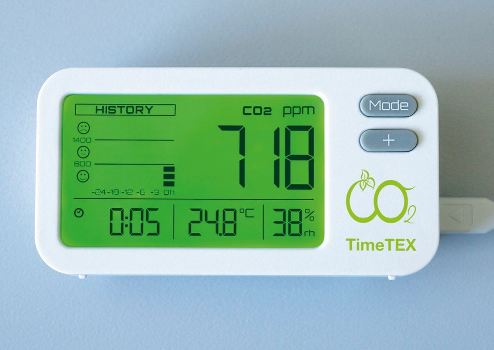 Die Hintergrundbeleuchtung des Displays kann dabei eine Signalfunktion einnehmen: sie wechselt entsprechend der CO2-Konzentration von grün auf gelb und schließlich auf rot.