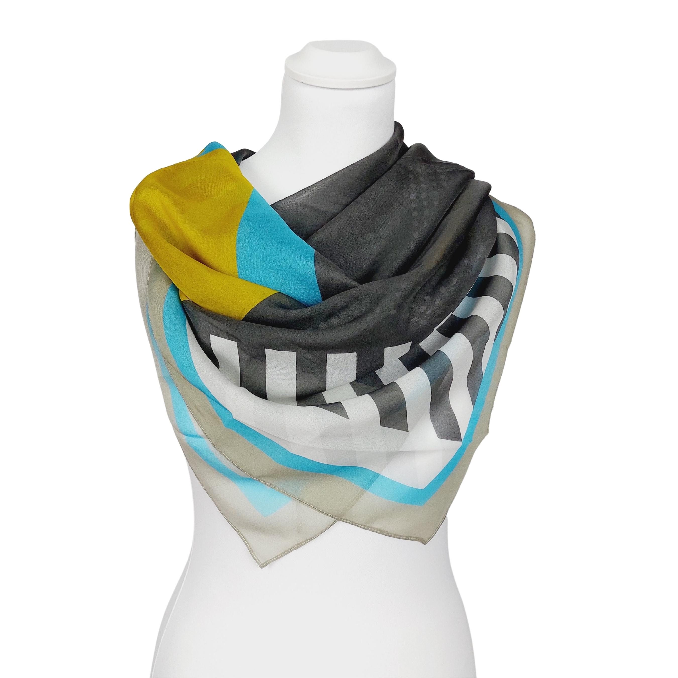 Seidentücher von TINITEX aus 100% Seide Um für jeden Anlass ein passendes Outfit parat zu haben, stehen uns verschiedenste Accessoires zur Verfügung. Was halten Sie von einem modernen grau-beigeen Seidentuch mit grafischem Design in weiß, blau und gelb? Mit einem Tuch aus reiner Seide von TINITEX bereichern Sie auf jeden Fall Ihre Garderobe. Patchwork-Seidentuch mit Grafikprint Unterstreichen Sie Ihren individuellen Modestil mit diesem stylischen Seidentuch. Es besteht aus 100% Seide und bietet einen hohen Tragekomfort für die Haut. Durch die hohe Festigkeit wirkt Seide besonders isolierend gegen Kälte und Wärme und ist daher ein zeitloser Klassiker - geeignet als Sommerschal und als Winterschal. Durch verschiedenste Tragevarianten des Seidentuch können Sie Ihr Outfit sehr kreativ gestalten. Dieses farbenfrohe Tuch im XL-Format peppt nicht nur Ihren Alltags-Look auf, sondern unterstreicht auch Ihr Business-Outfit.