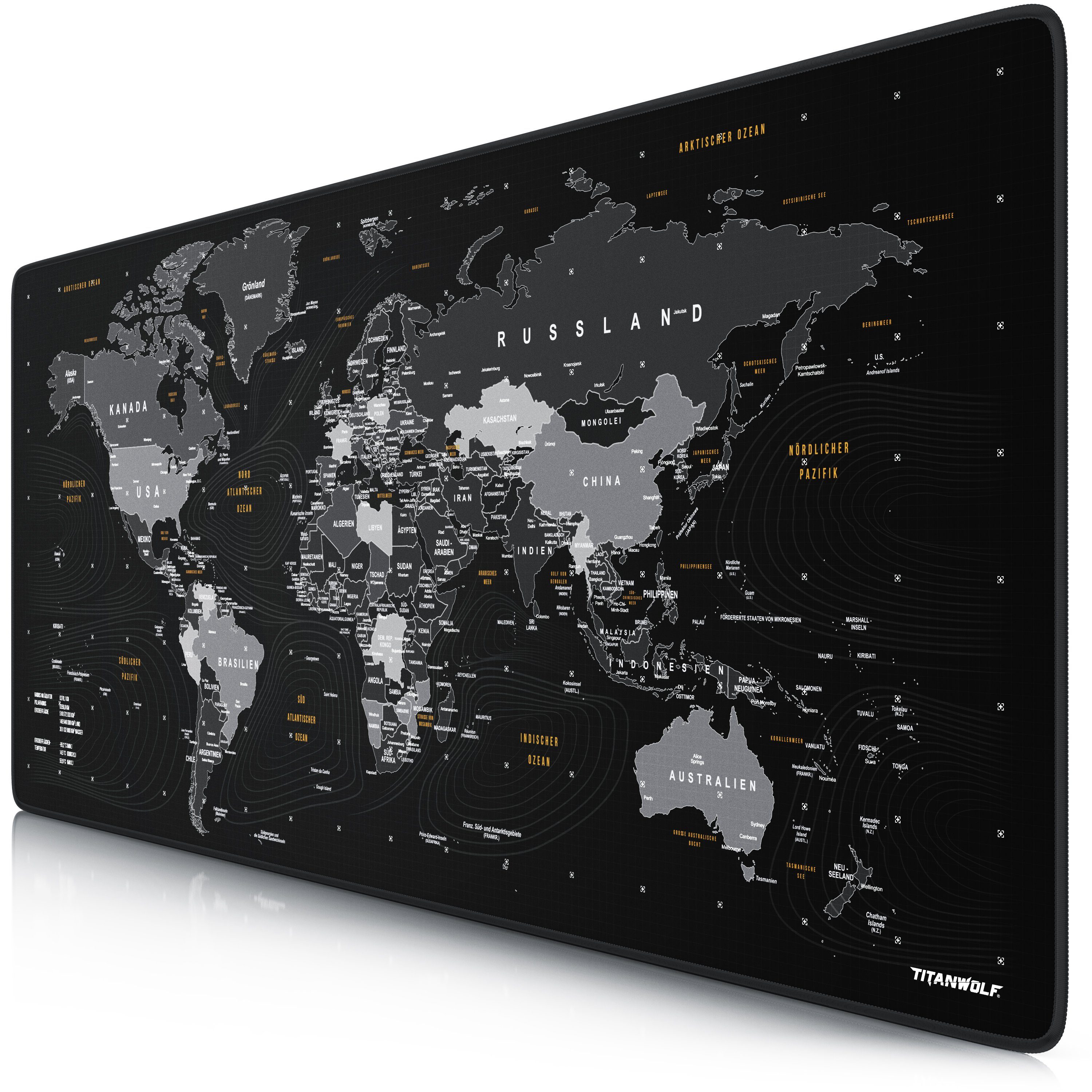 Titanwolf Gaming Mauspad XXL Speed Mousepad 900 x 400 x 3 mm, große Tischunterlage, rutschfest, abwaschbar, Geschwindigkeit & Präzision, Weltkarte