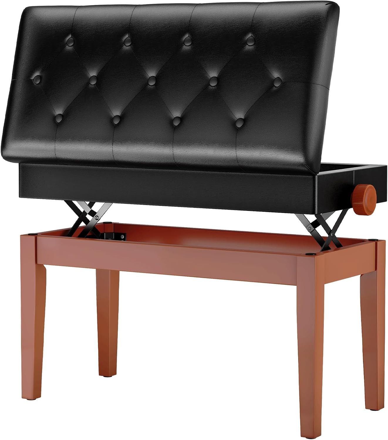 PU SITZKISSEN: Die Размер des Pianobank beträgt 56 x 33 cm und die Oberfläche ist mit einem reißfesten PU-Lederkissen bedeckt, das leicht zu reinigen ist. Das Sitzkissen enthält einen 3 cm dicken, hochdichten Schwamm, der eine gute Elastizität und hohen Komfort bietet. Gleichzeitig ist die Oberfläche des Sitzkissens mit Zierknöpfen verziert, was der keyboard hocker nicht nur ein attraktives Aussehen verleiht, sondern auch die Elastizität des Schwamm-Sitzkissens für lange Zeit gewährleistet.