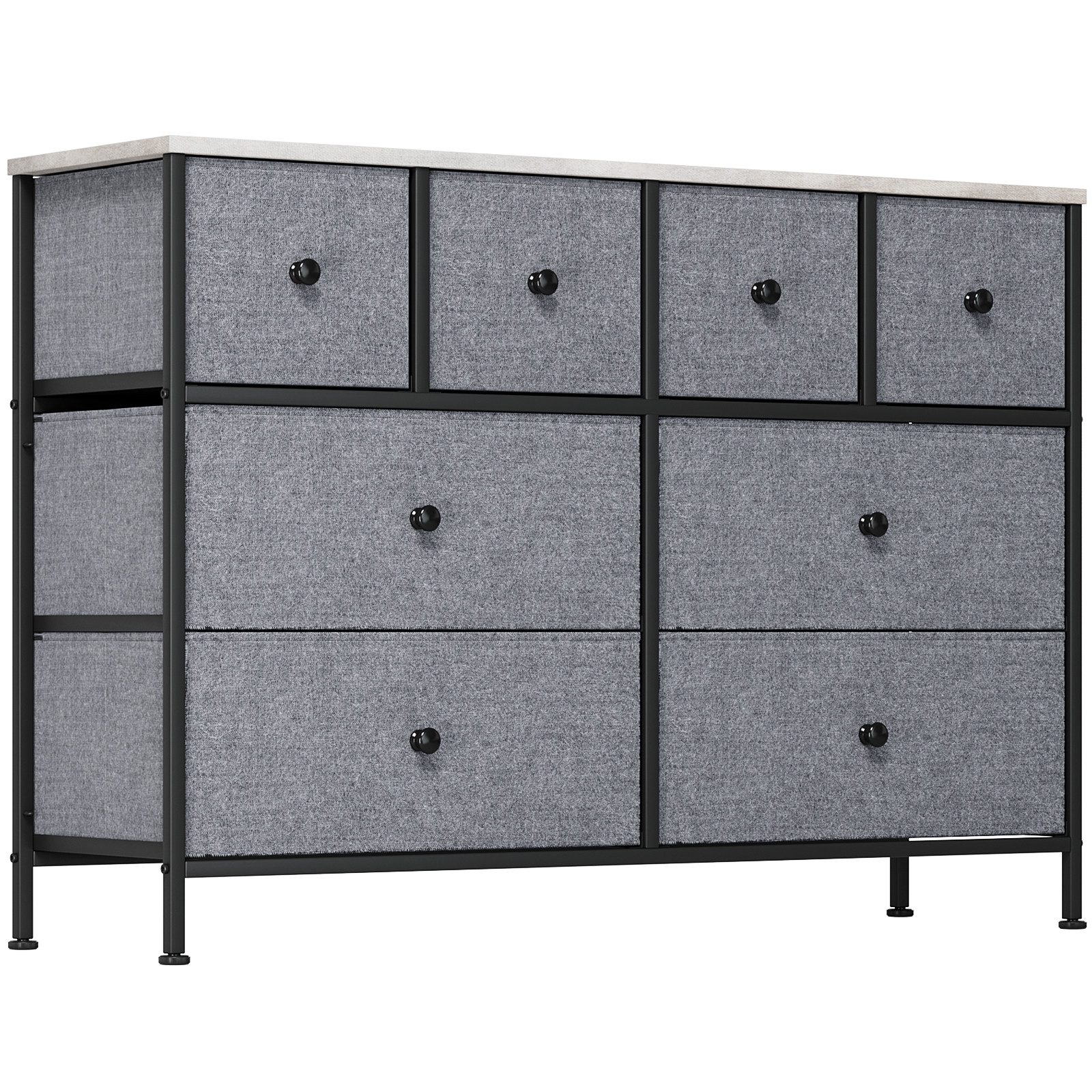 Material: Stoffschubladen + Metallrahmen + Spanplatte.